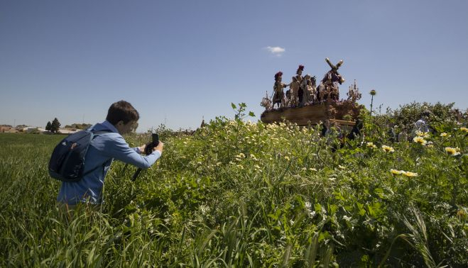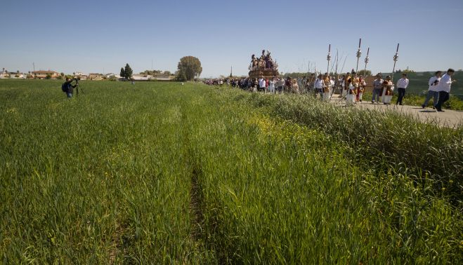 Las estampas más exclusivas que ofreció ayer esta cofradía fueron en el recorrido del camino de Espera; puro campo entre sembrados, ganado y gañanías; los lugareños que poco o nada sabían de la movida cofrade, se sorprendieron al ver, primero, el anormal tráfico que registraba la carretera desde primera horas; y después, observar atónitos el paso de la cofradía, algo impensable por aquellos lares.