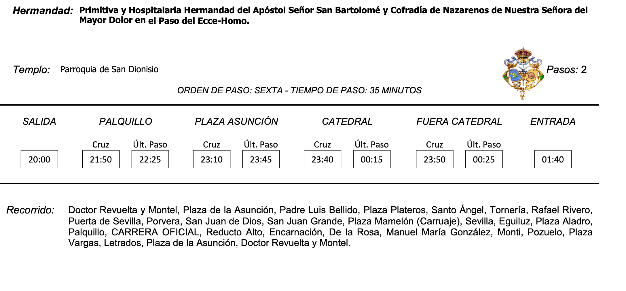 El Jueves Santo Jerezano reúne a las dos hermandades más longevas de la ciudad e incorpora una más al día, la de Humildad y Paciencia que entrará la cuarta en Palquillo, cumpliendo así el deseo de la cofradía de buscar la noche. Además lo hará con su nuevo paso tallado. Del mismo modo que en los días anteriores, las hermandades de la jornada han enriquecido su patrimonio con el avance de trabajos iniciados.