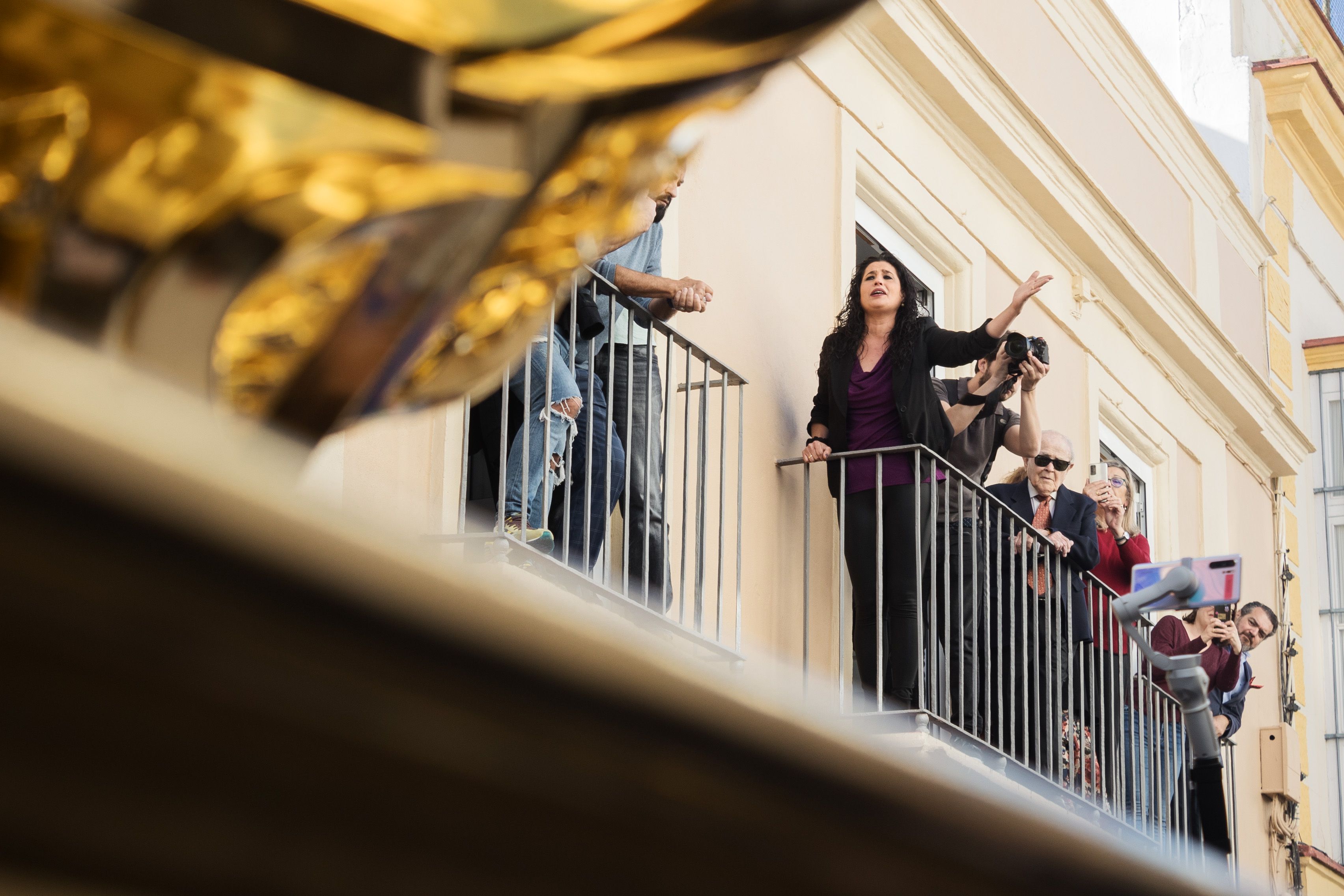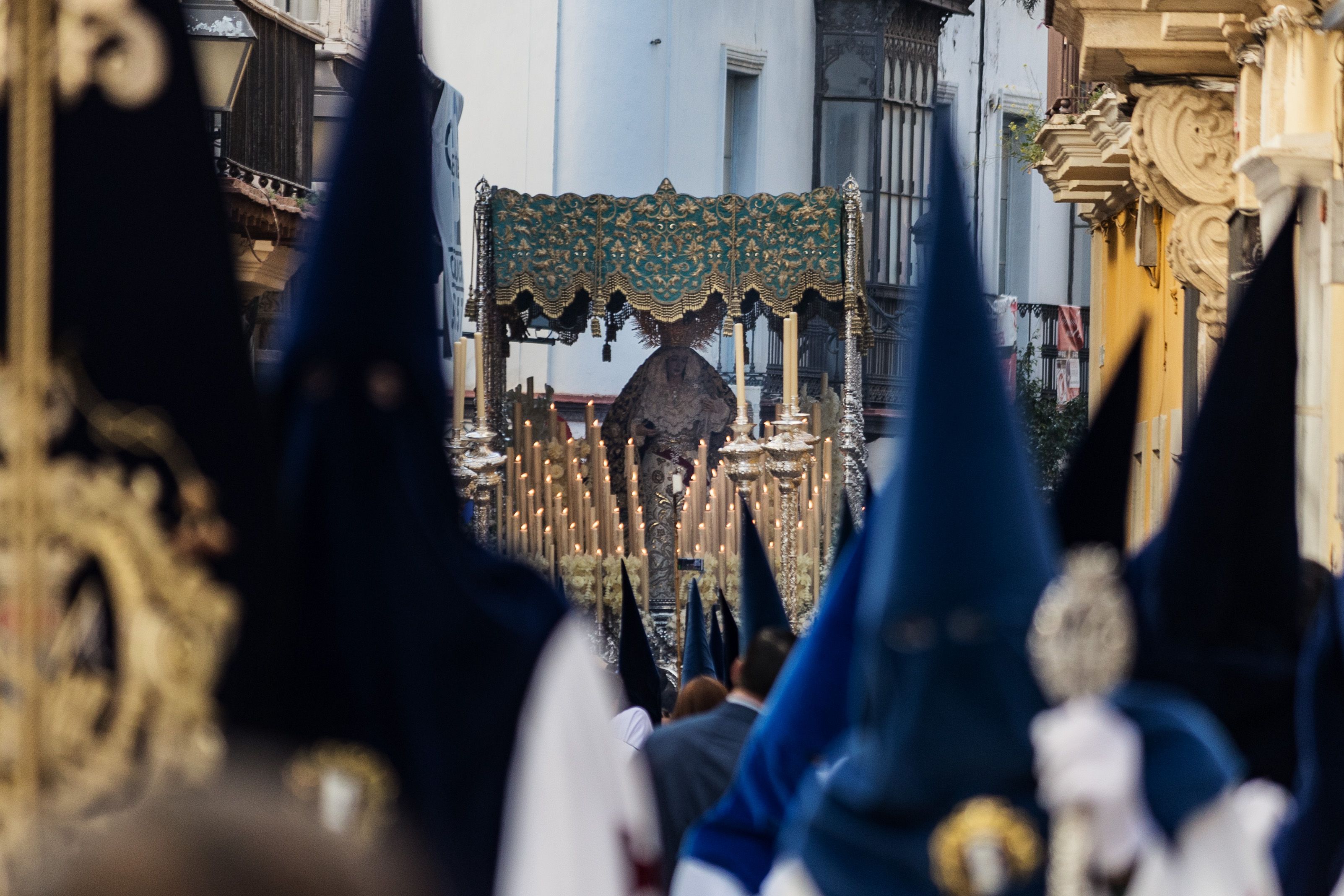 La Amargura siempre ordenada, como es marca de la casa. No deja nada sin medir desde que sale hasta el final. Con un paso de misterio reluciente gracias al dorado que estrenó. Y el palio de la Dolorosa de la calle Medina que nunca deja indiferente por la dulzura de sus hechuras acordes con la belleza de La Amargura cuyos alhelíes dejaban a su paso un exquisito aroma.