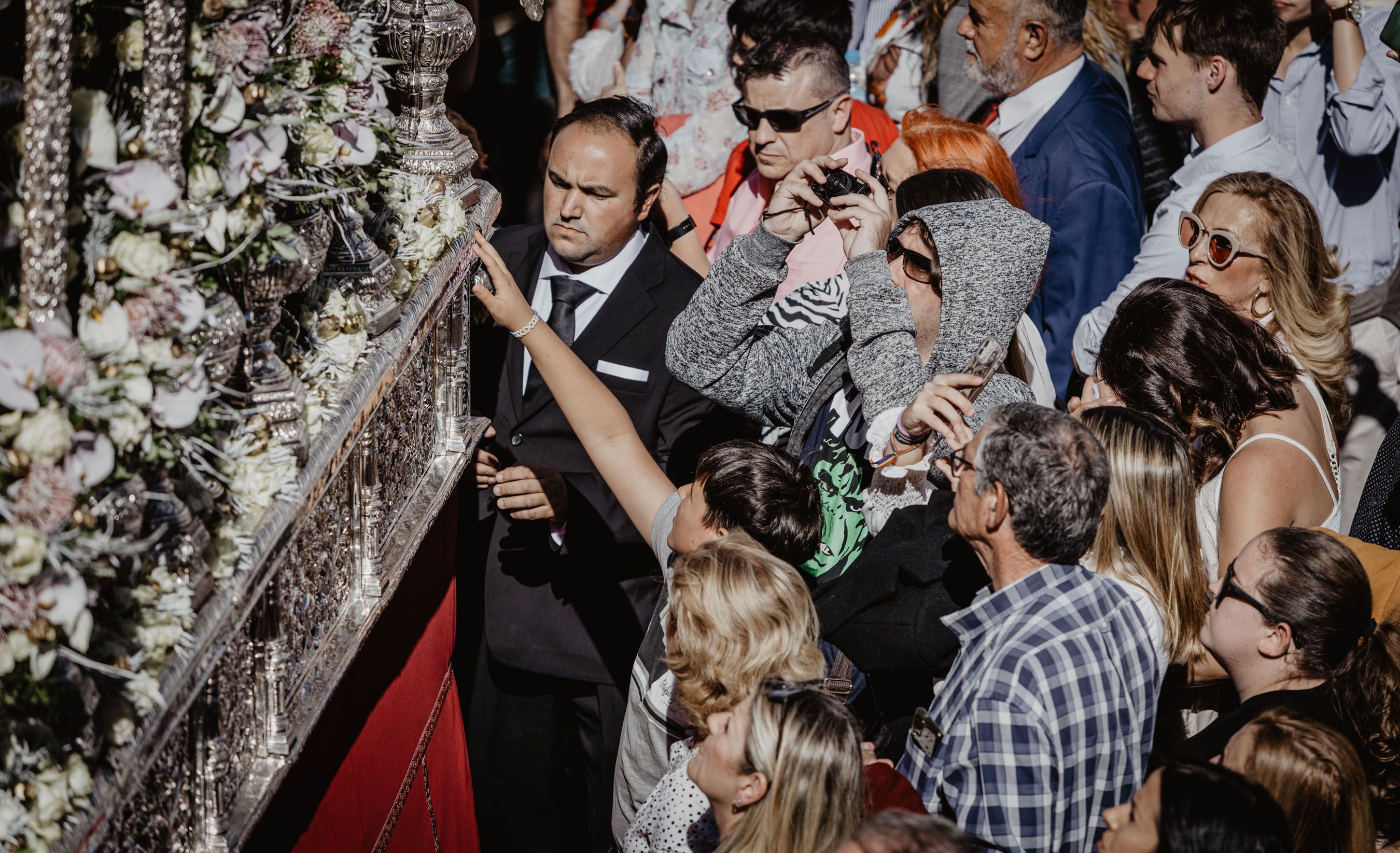 El paso de palio de Madre de Dios del Patrocinio, en Carrera Oficial.