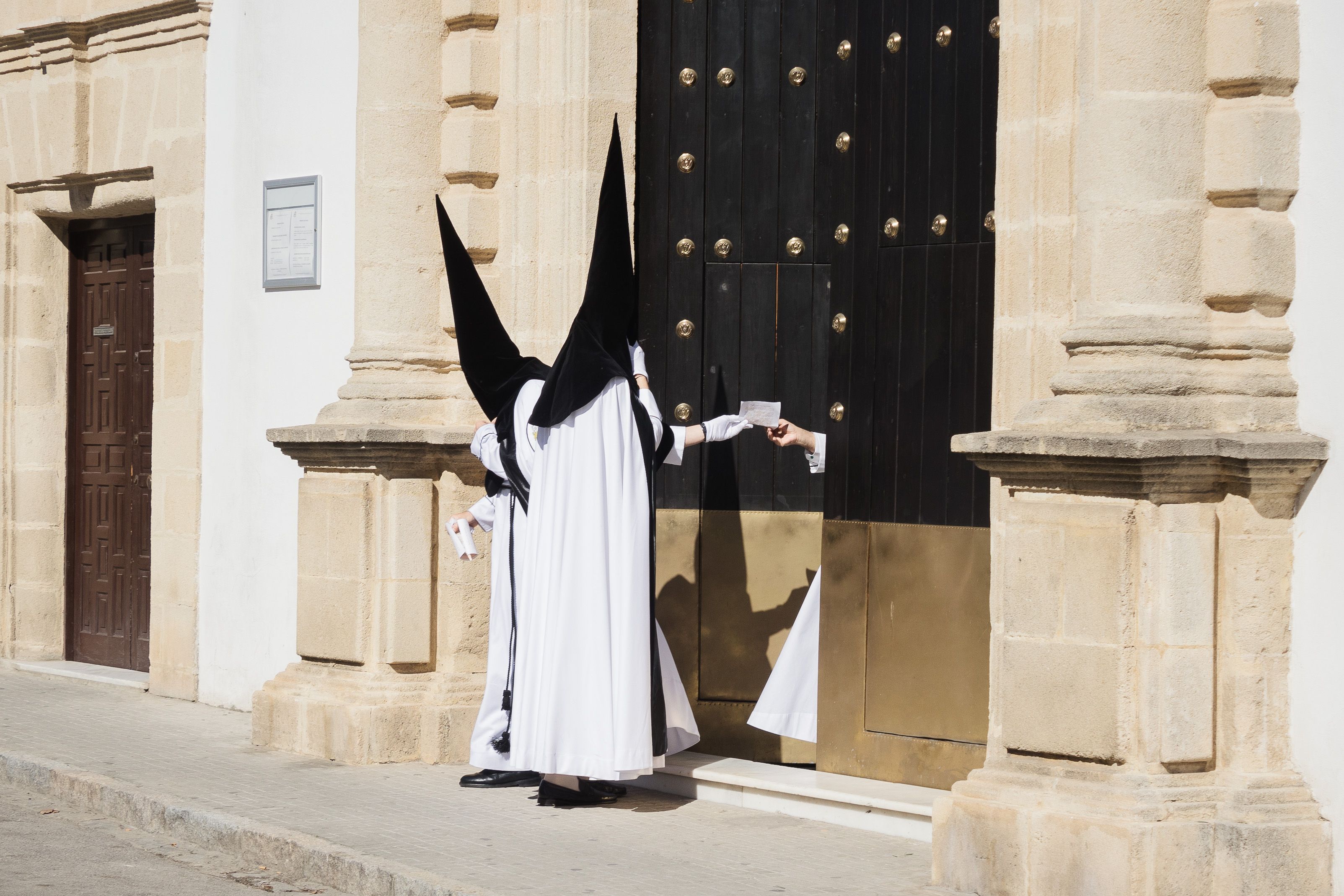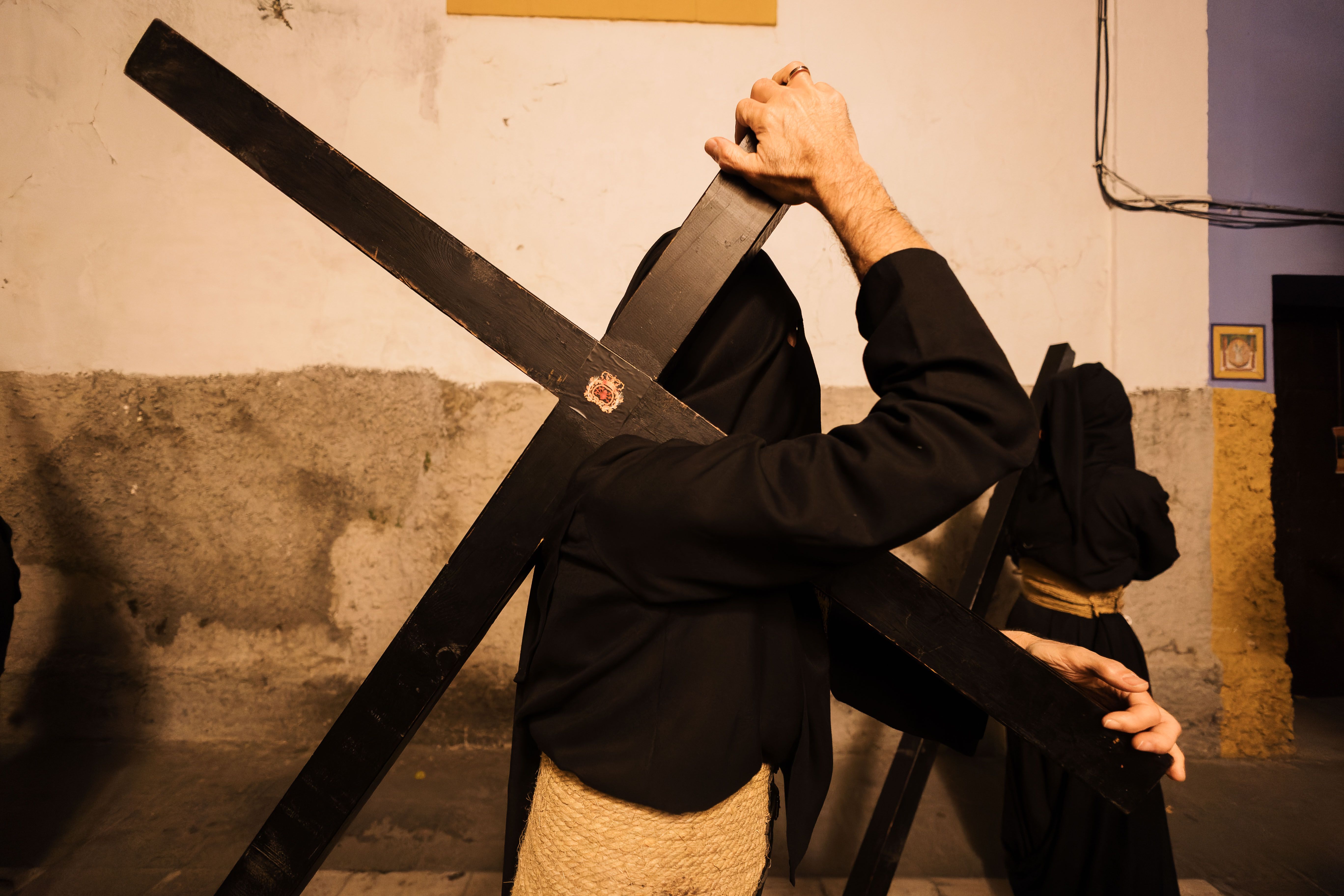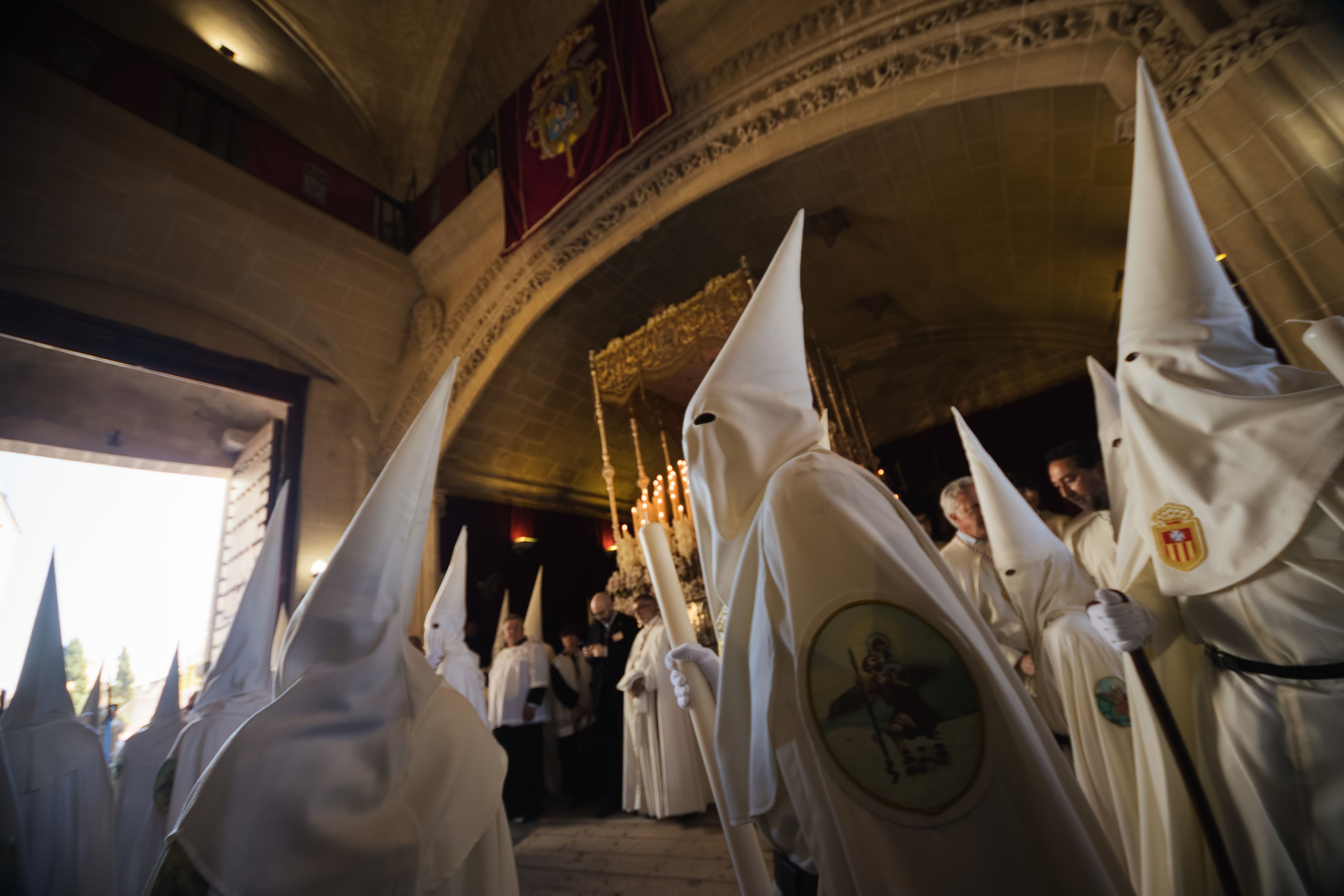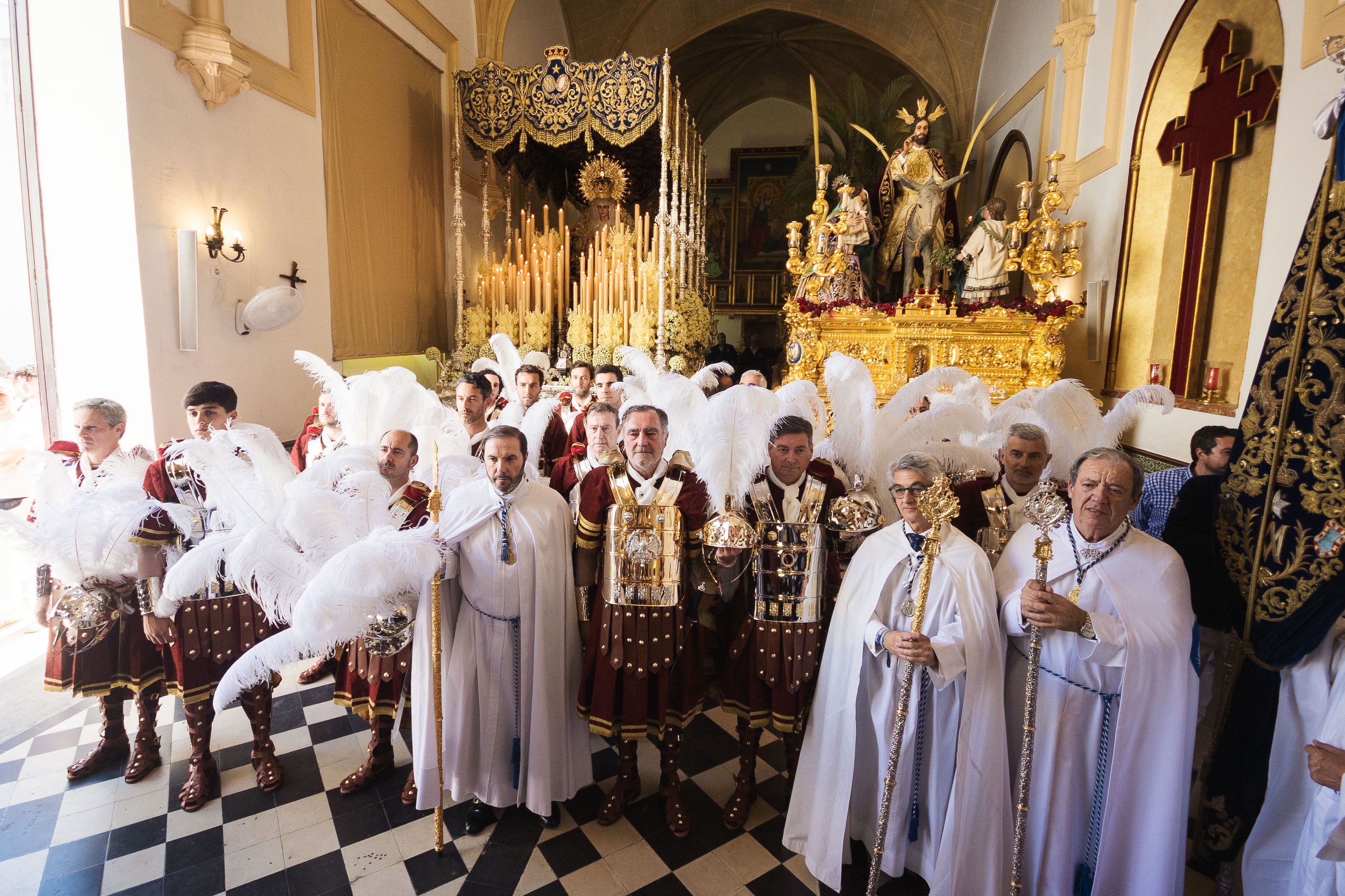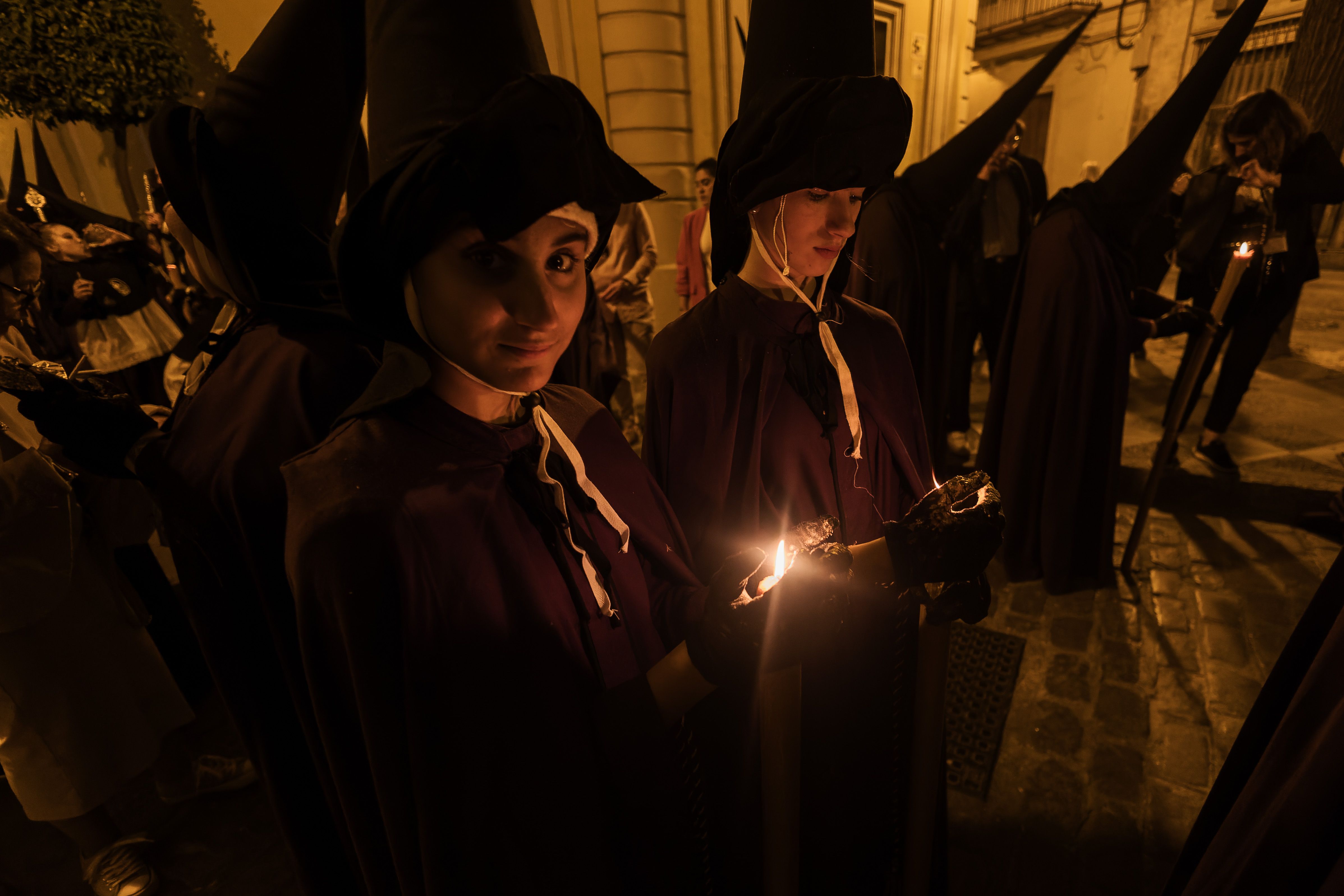 Una hermandad con historia y largo recorrido en la vida cofrade local. Santo y seña de la pureza en las calles. Todo para exponer en procesión a la Dolorosa del Humilladero, la Piedad, la Virgen con Cristo muerto en su regazo sobre un jardín rojo sangre de toro y de voces blancas que van anunciando su llegada. Es la música de Las Angustias. Sin más. Con ese contrapunto de negros y silencios se recoge el Domingo de Ramos.