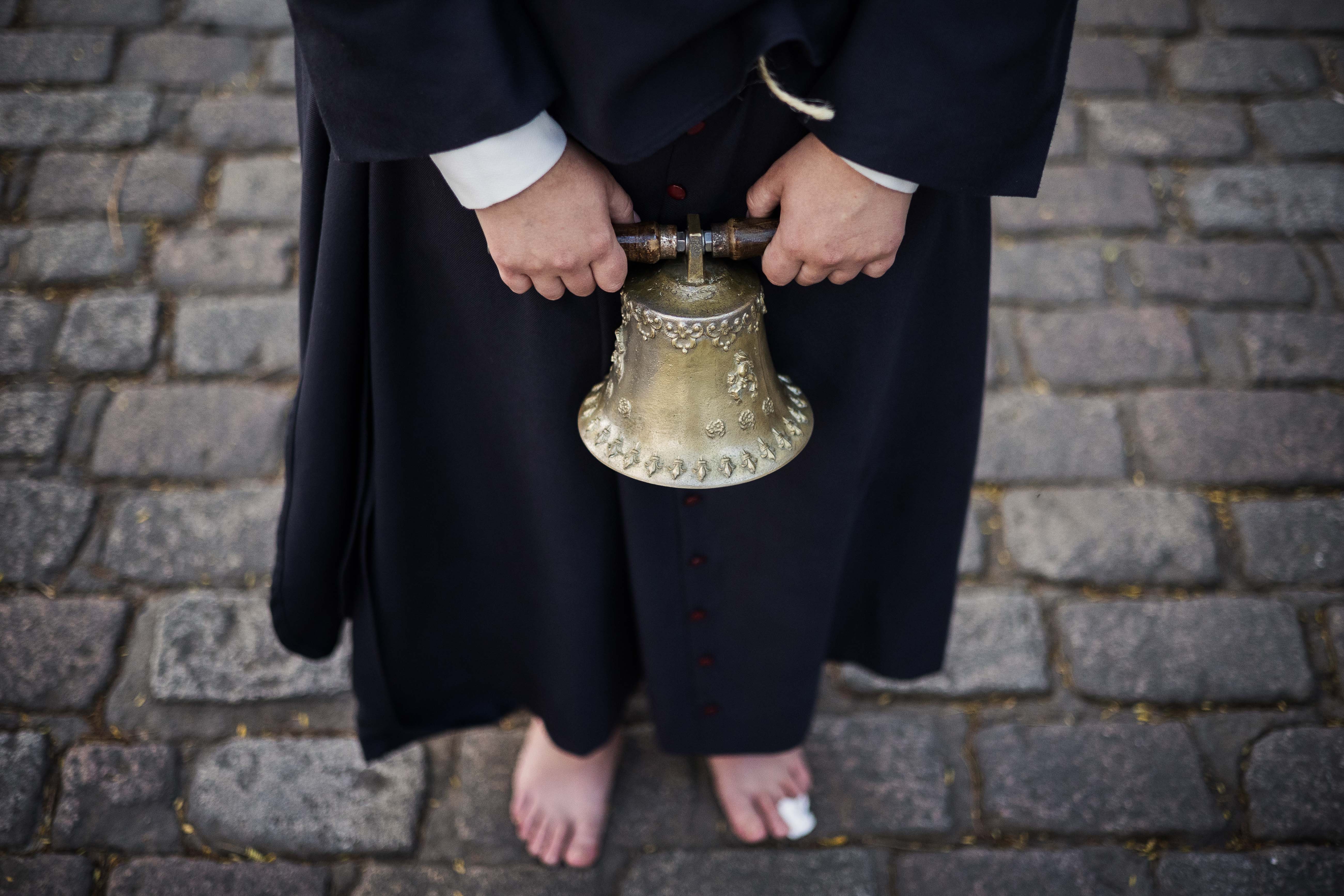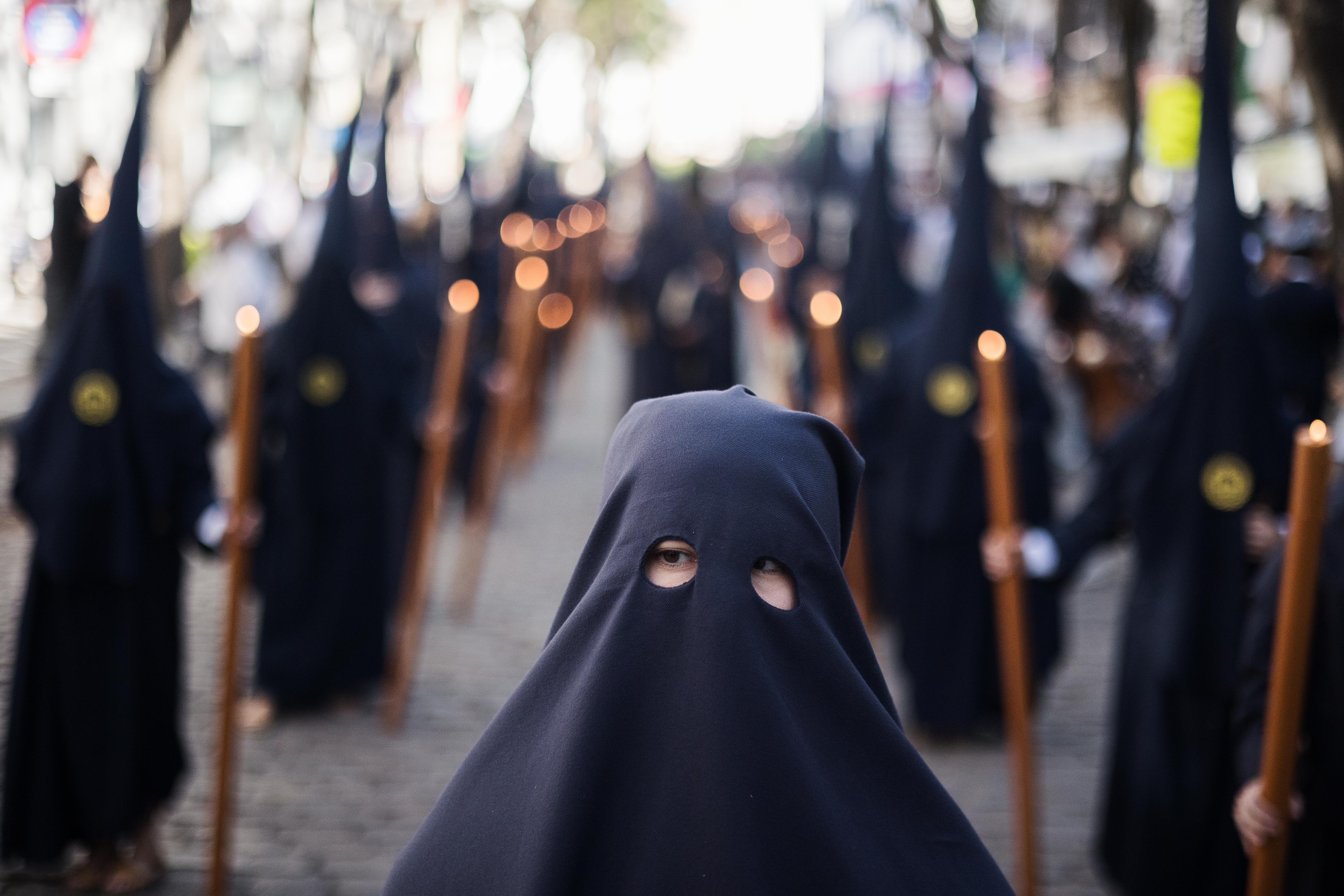 La larga fina de negros penitentes ordenados, de mirada al frente, de esparto en las cinturas. De cera color tiniebla, de campanitas sonando en las manos de los más pequeños.