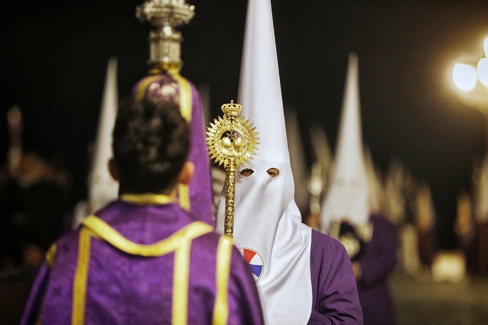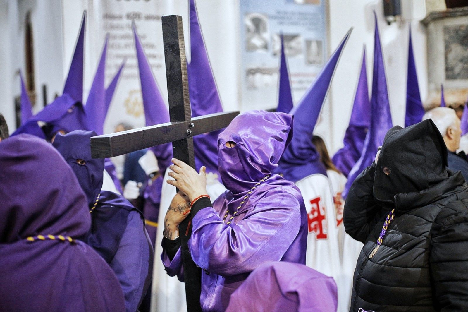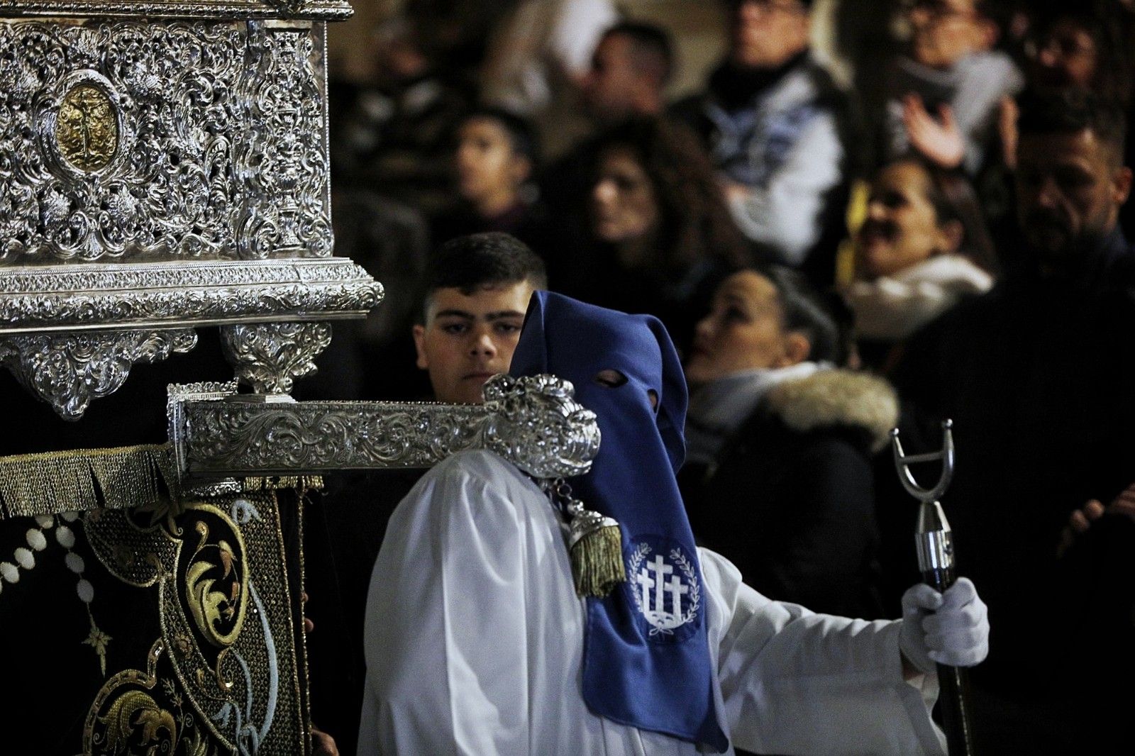 Esta cofradía “joven”, que nació el 9 de marzo de 1935, ha llenado el casco antiguo de colores azul y blanco con sus titulares, el Cristo del Perdón y la Virgen del Rosario, que este año ha estrenado un pectoral.