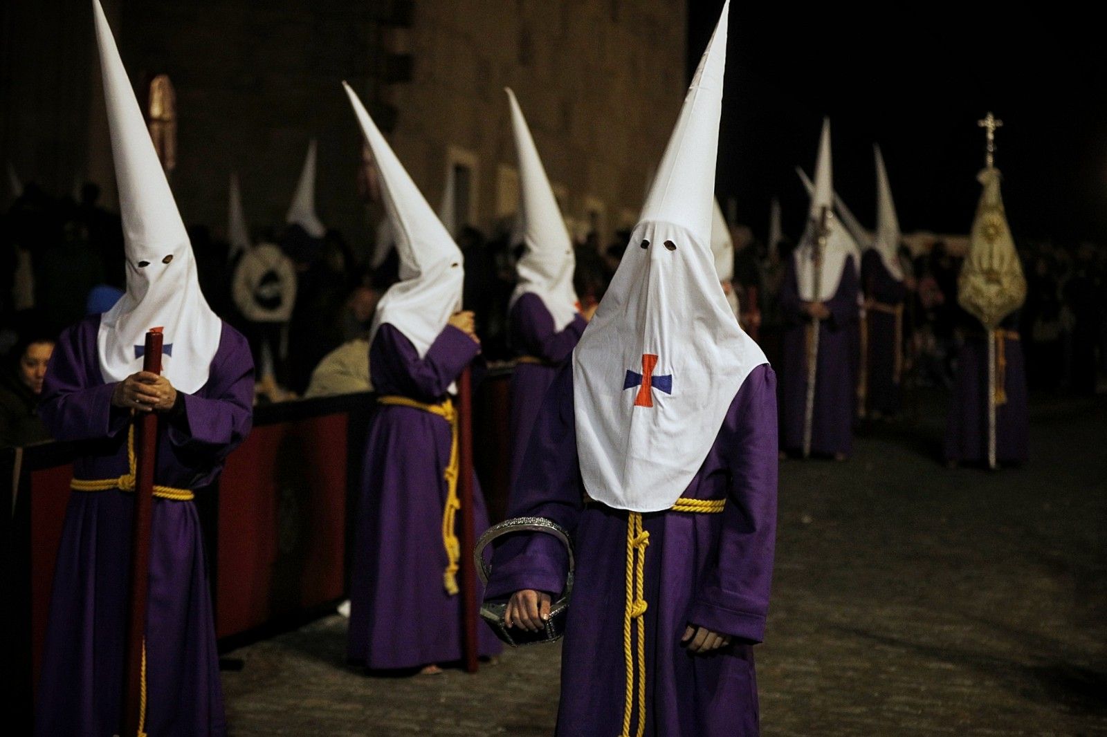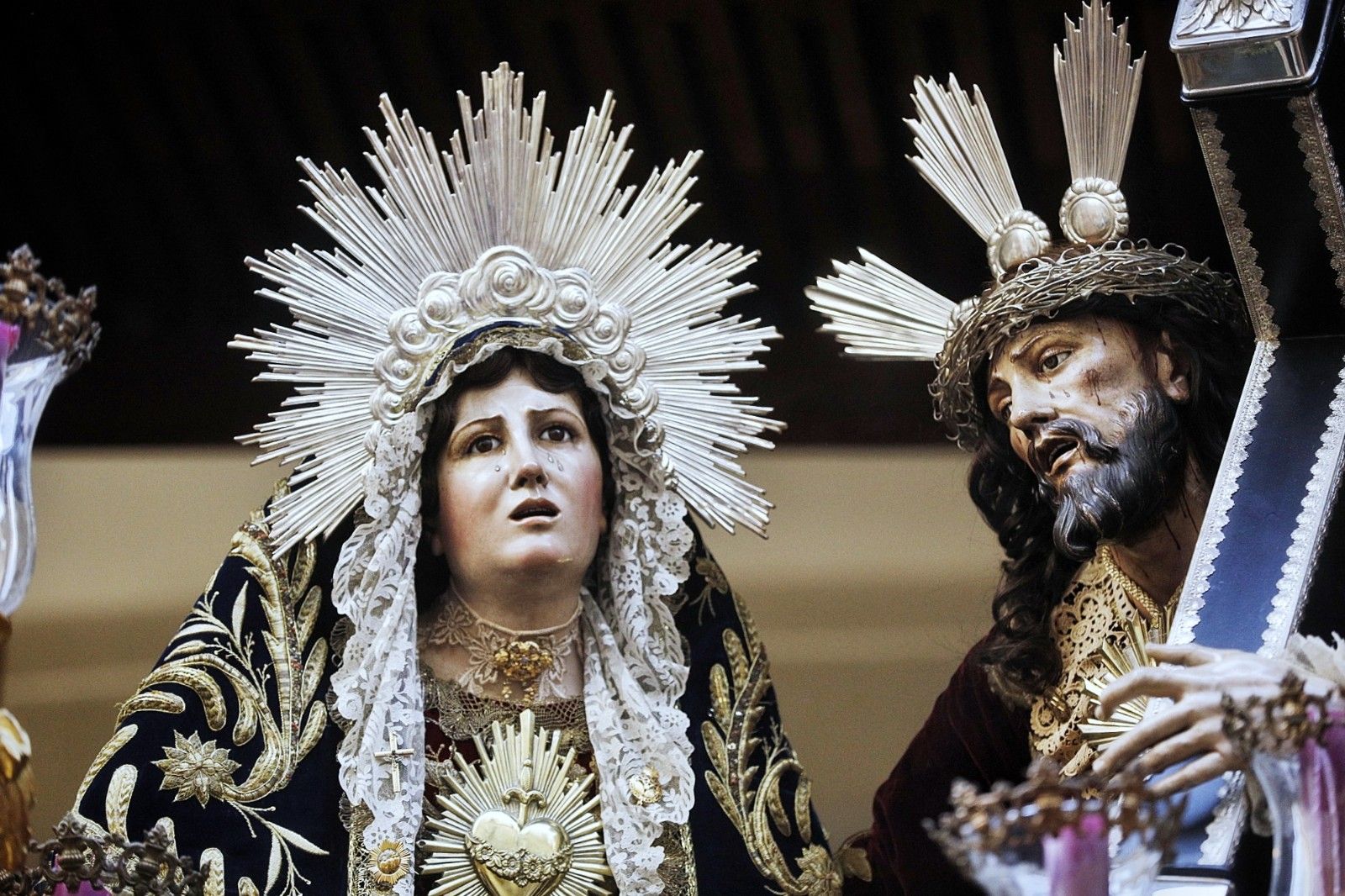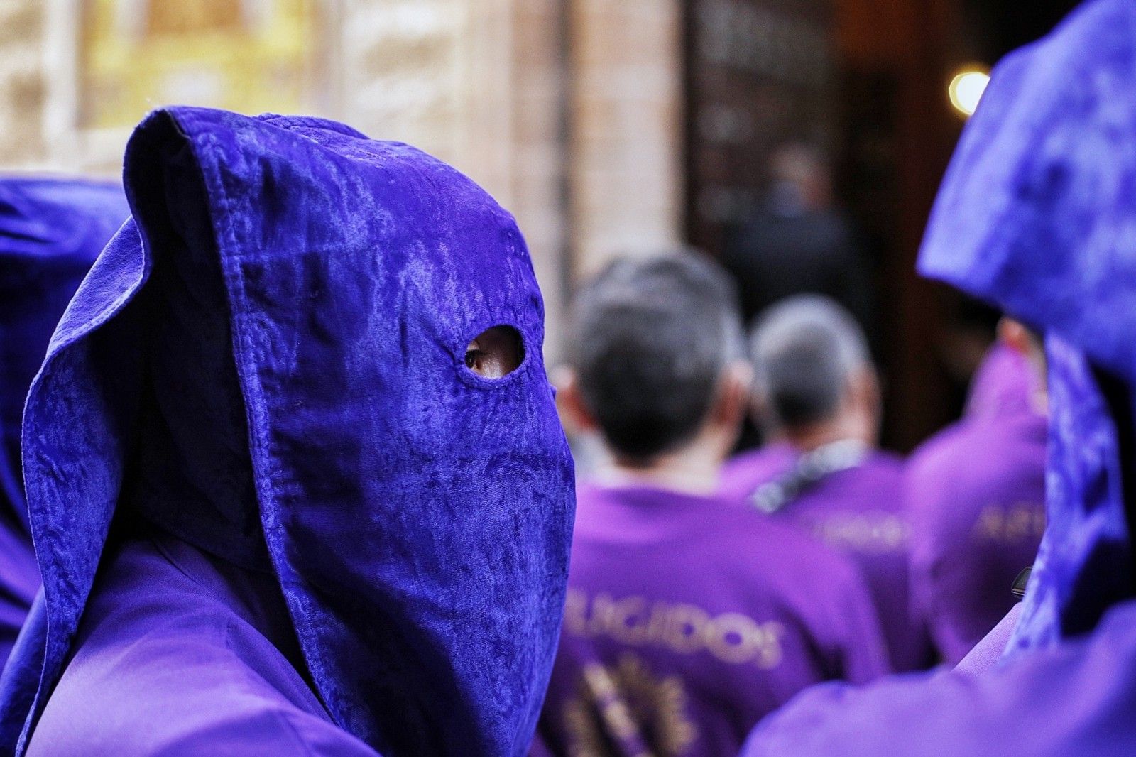 Esta cofradía “joven”, que nació el 9 de marzo de 1935, ha llenado el casco antiguo de colores azul y blanco con sus titulares, el Cristo del Perdón y la Virgen del Rosario, que este año ha estrenado un pectoral.