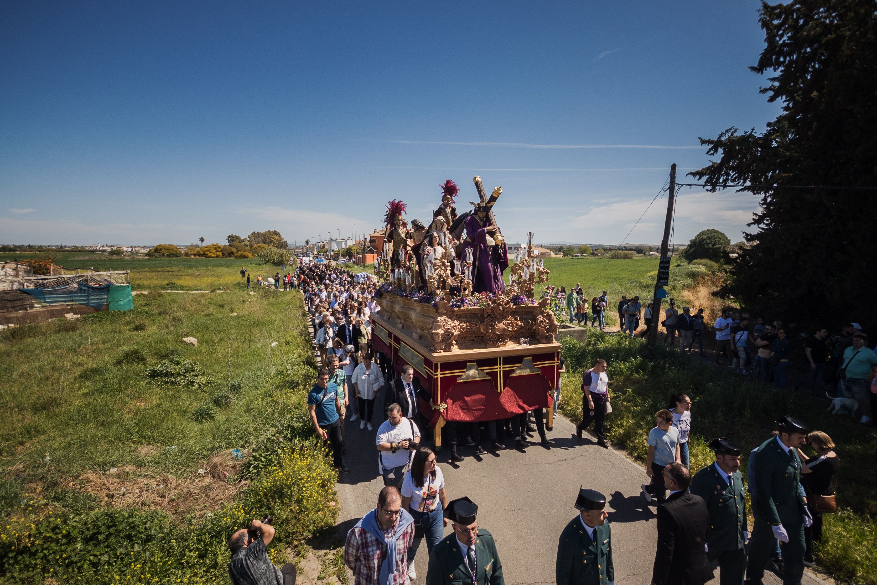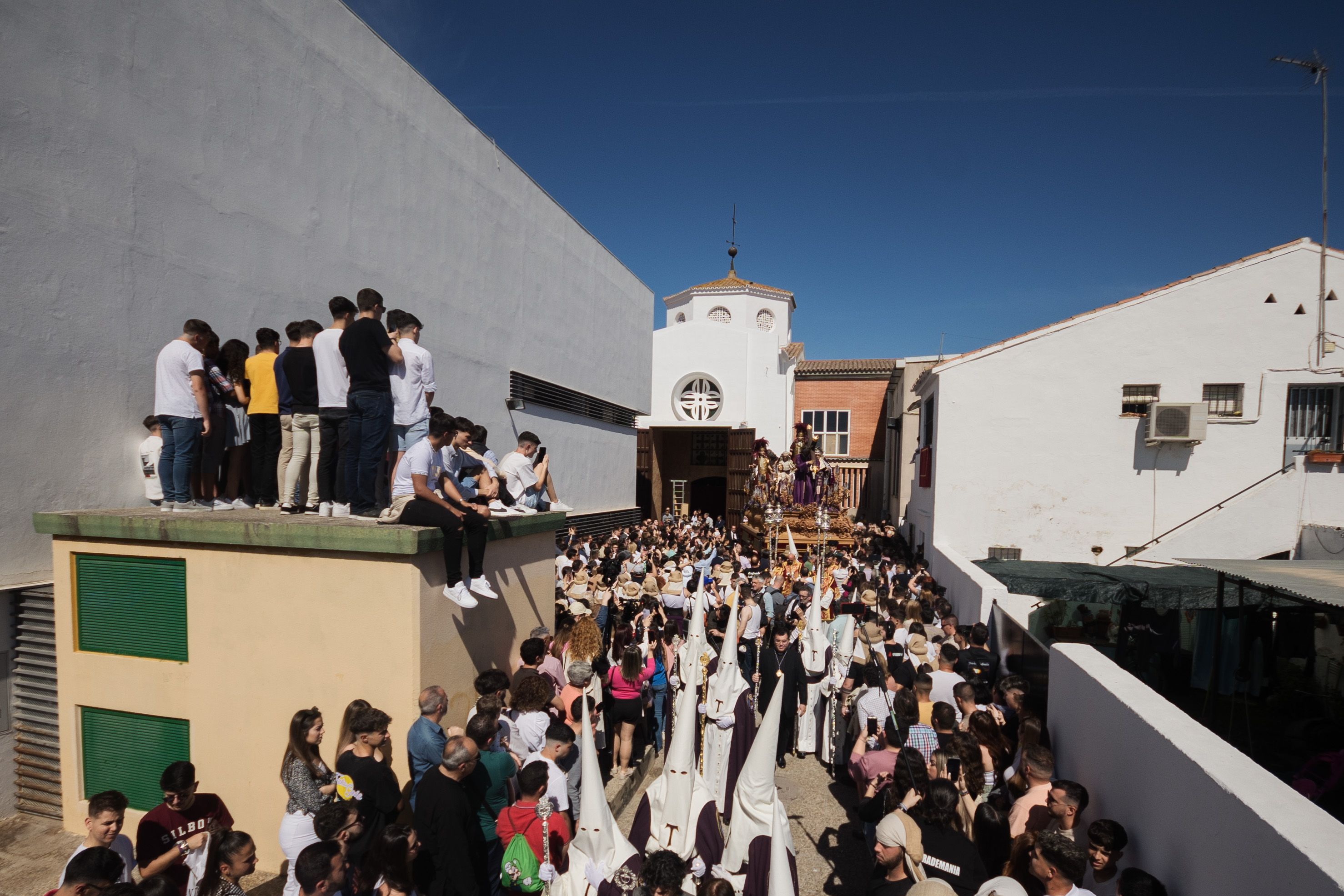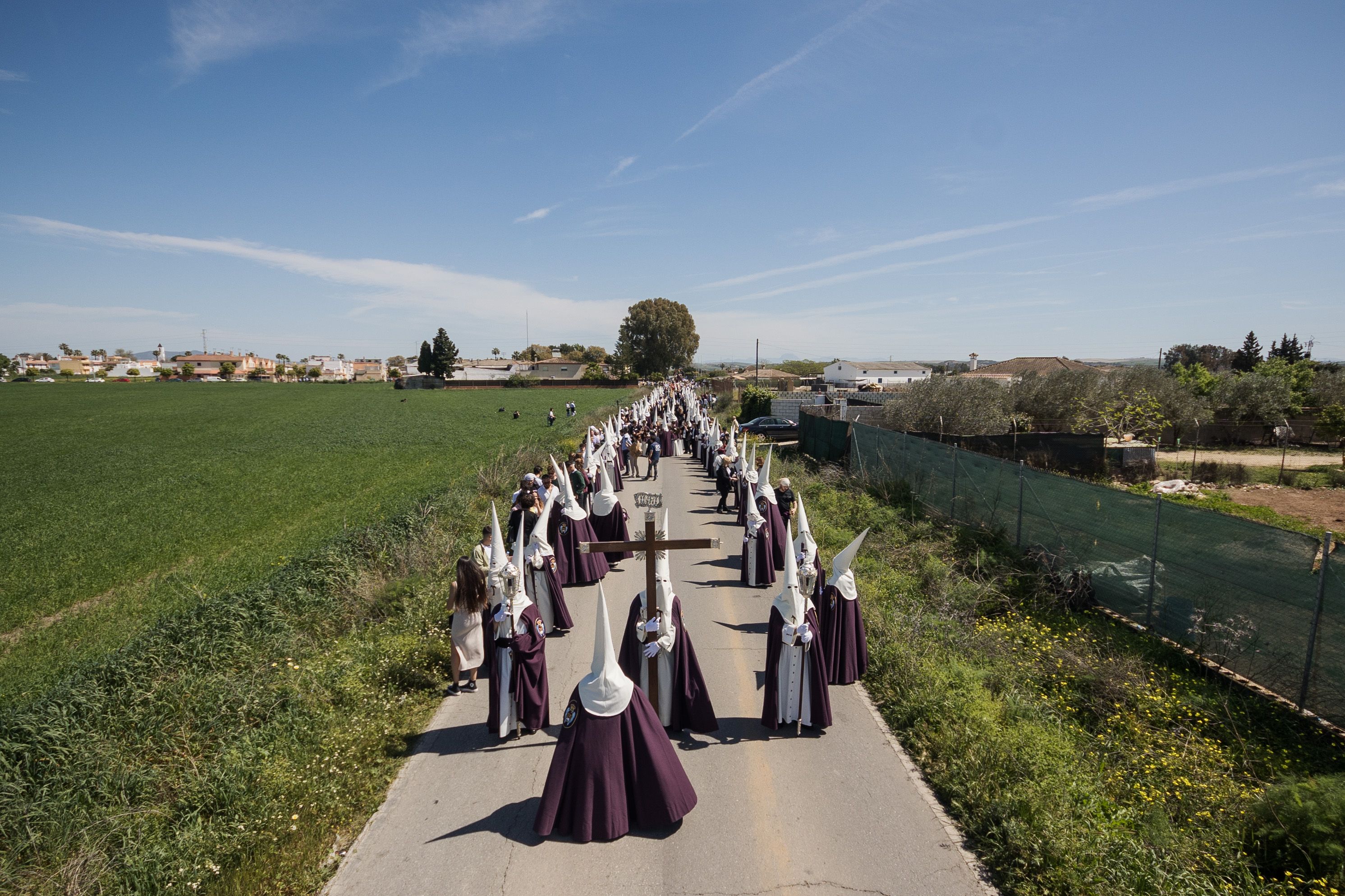 La hermandad inició su largo camino poco después del mediodía para cumplir por segundo año un reto por el que pocos apostaban hasta no hace mucho: recorrer casi 14 kilómetros y estar también 14 horas en las calles. La recompensa al esfuerzo la encontraron en el amparo que el público le dio a la cofradía. Los momentos más sobresalientes se disfrutaron con la llegada de La Entrega a los alrededores de la Iglesia de San Marcos donde este año hizo la estación de penitencia e iniciar el regreso a Guadalcacín.