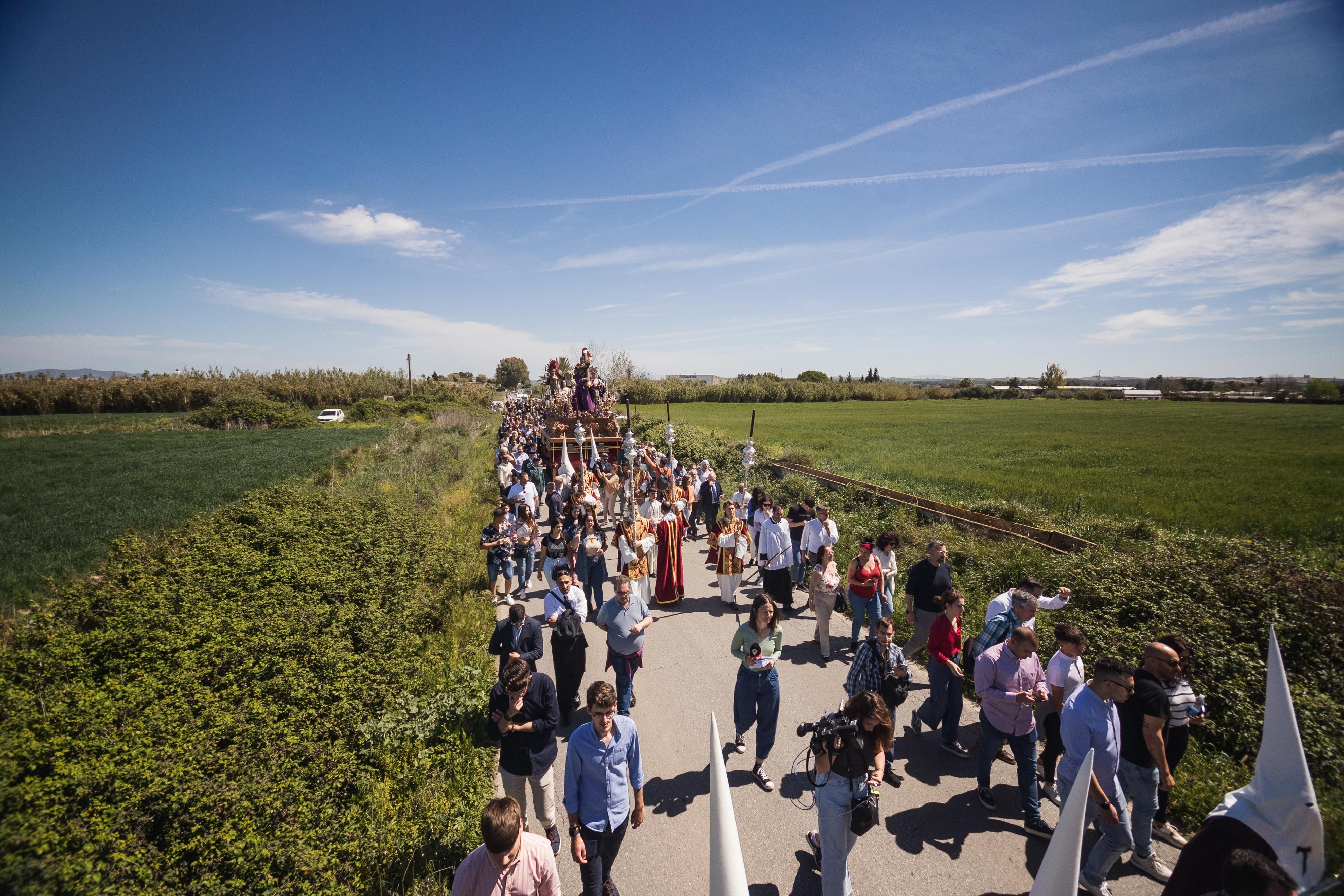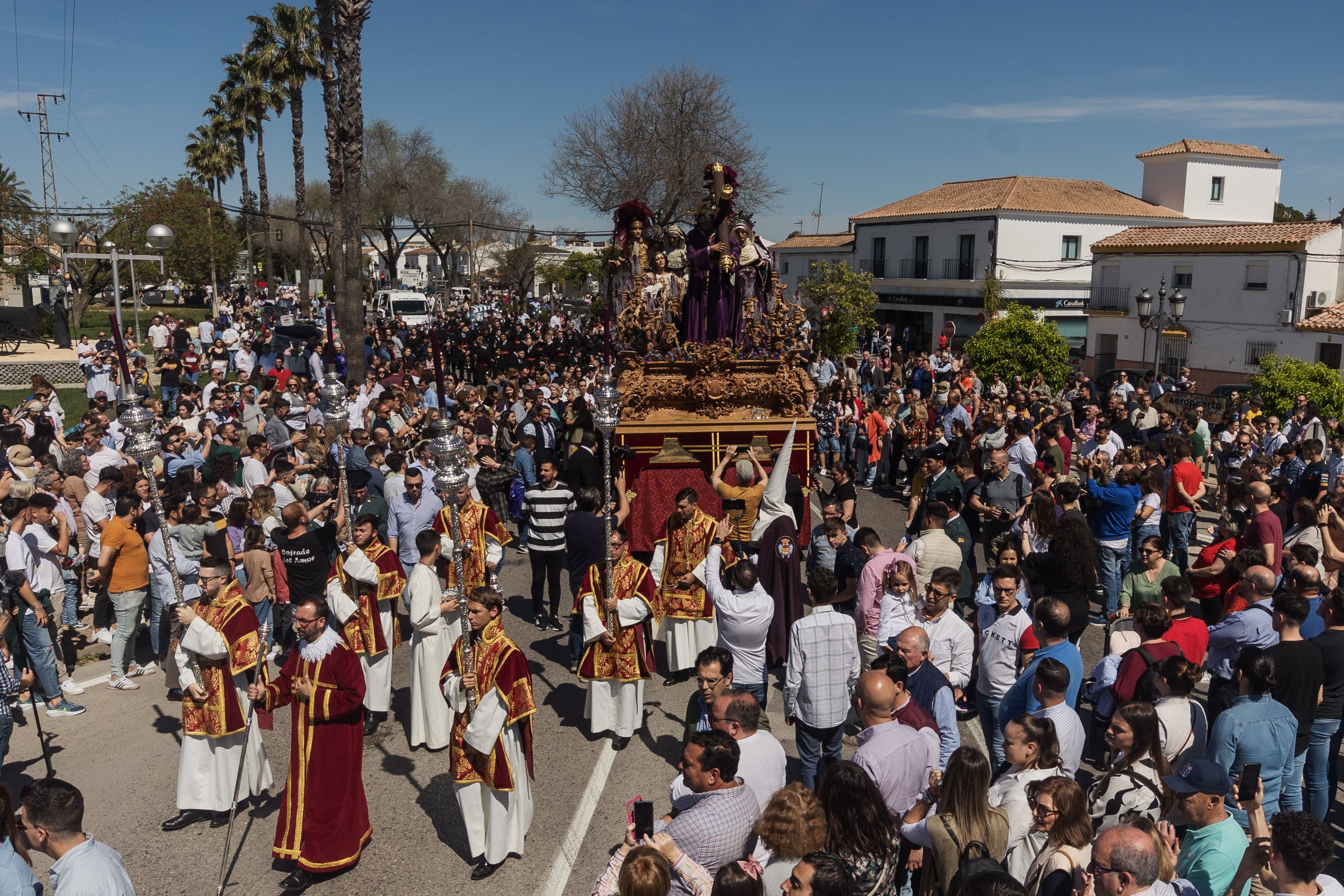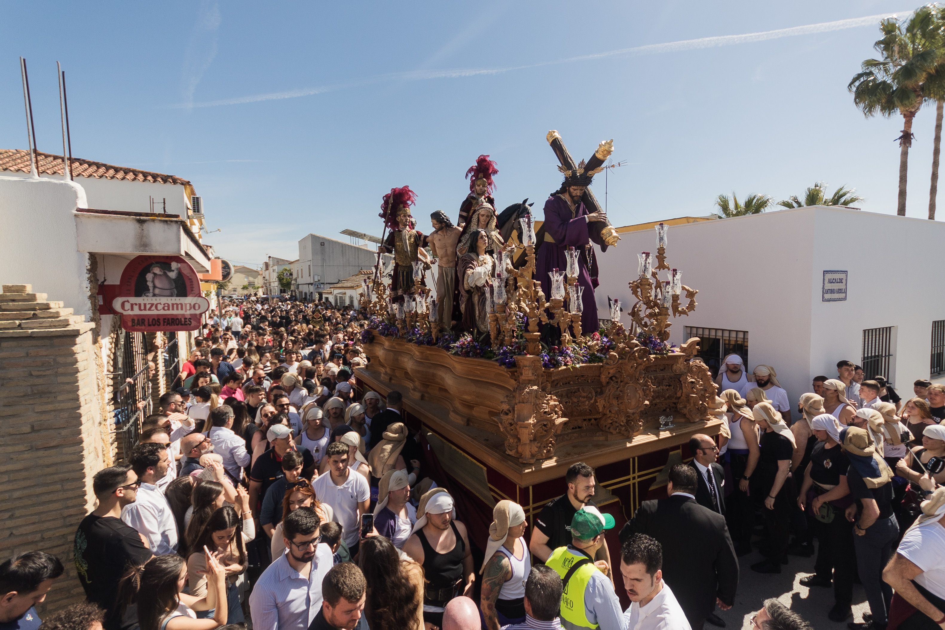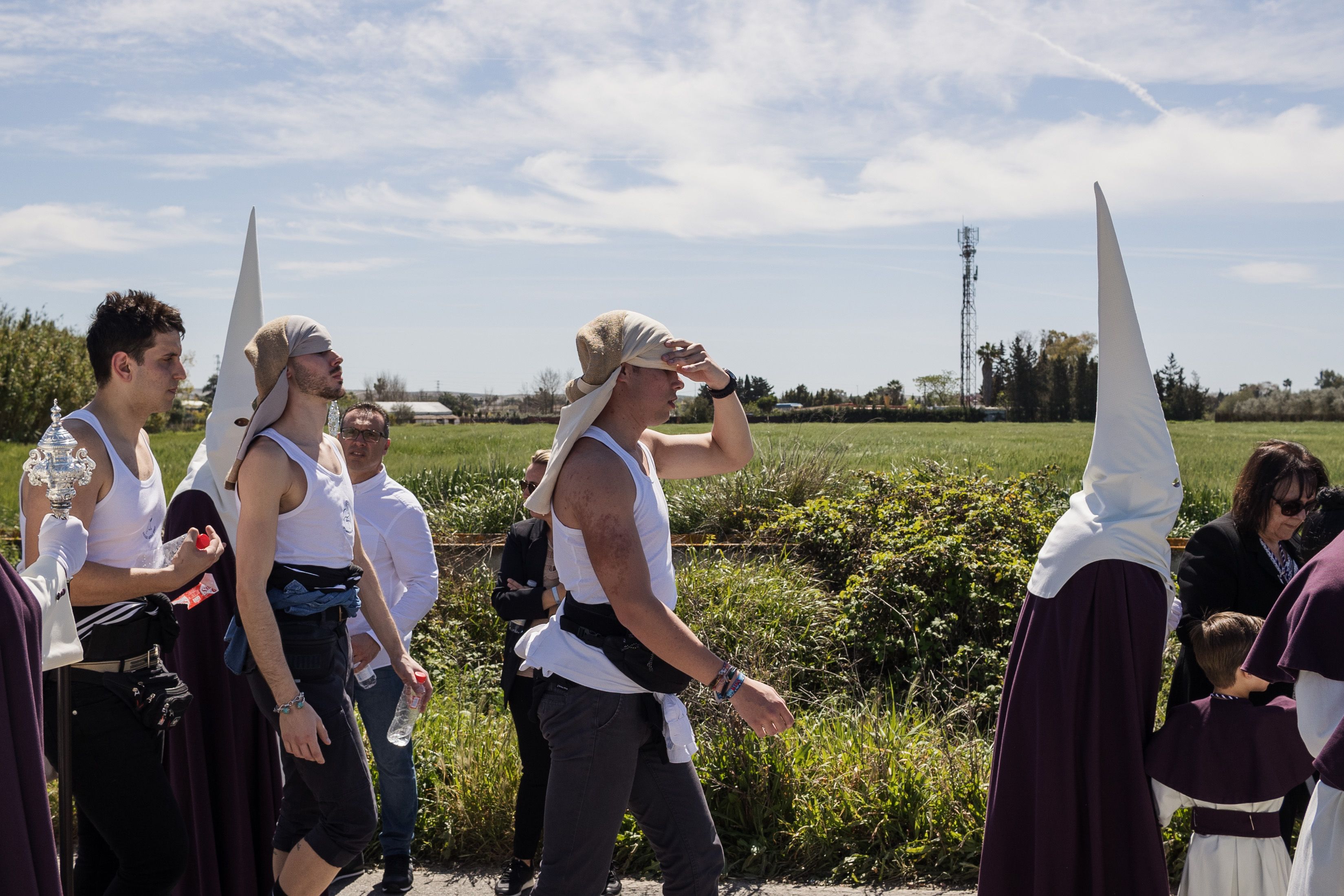 La hermandad inició su largo camino poco después del mediodía para cumplir por segundo año un reto por el que pocos apostaban hasta no hace mucho: recorrer casi 14 kilómetros y estar también 14 horas en las calles. La recompensa al esfuerzo la encontraron en el amparo que el público le dio a la cofradía. Los momentos más sobresalientes se disfrutaron con la llegada de La Entrega a los alrededores de la Iglesia de San Marcos donde este año hizo la estación de penitencia e iniciar el regreso a Guadalcacín.