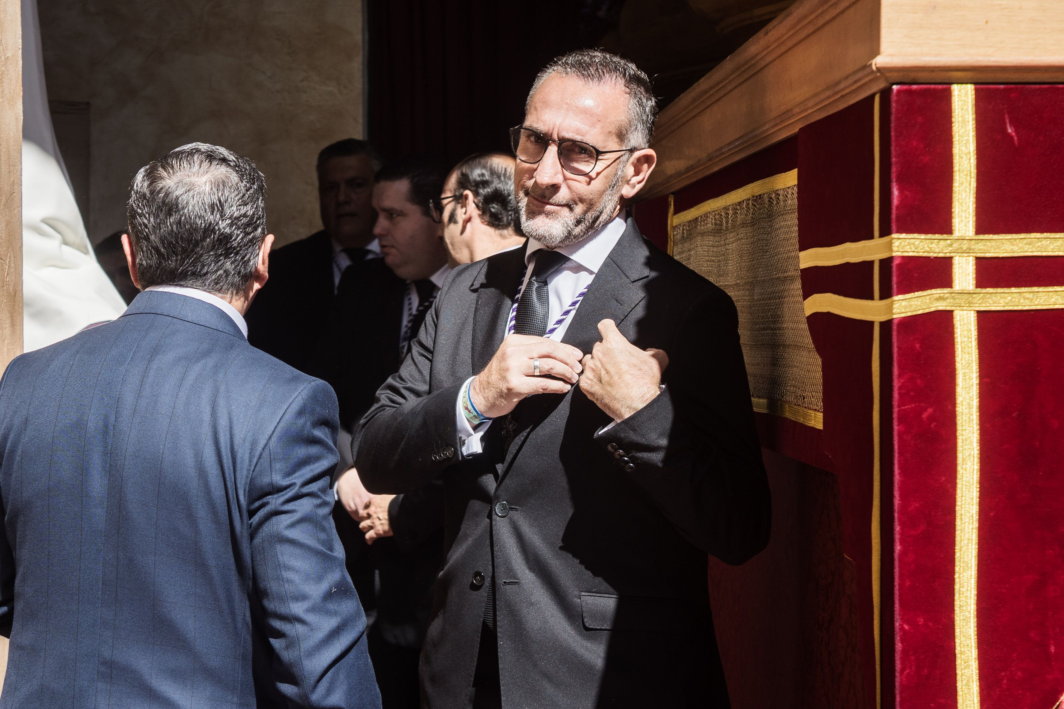 El capataz Tomás Sampalo durante la salida el Sábado de Pasión de La Entrega.