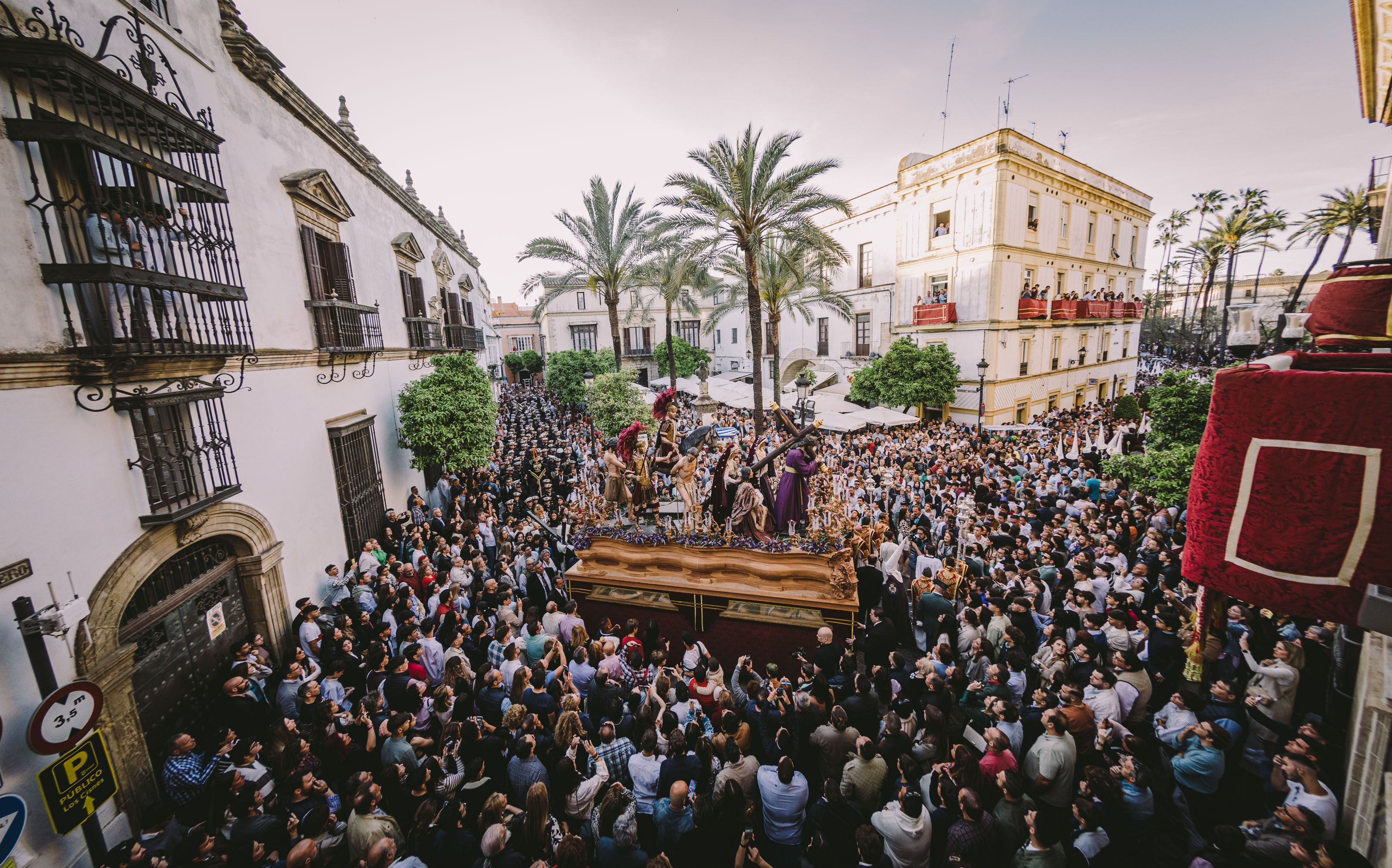Jerez ya respira y vive en Semana Santa, en cofrade y en unos dias especiales que rompen la rutina del día a día y que se transforma en una bulla compuesta por un gentío que toma unas calles que se convierten en la pasarela de una tradición ancestral.
