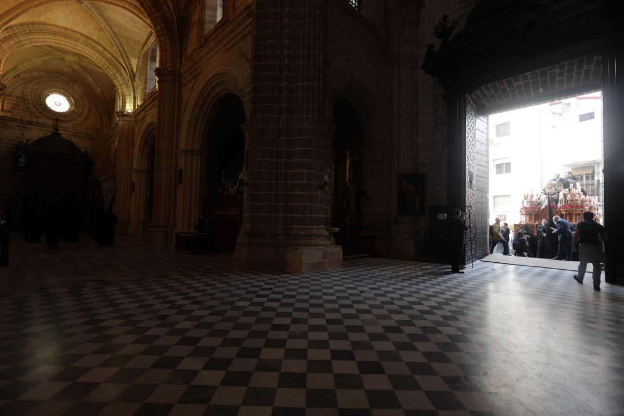El no tránsito de esta cofradía por la Catedral se desarrolló como estaba previsto, el paso se quedó en la puerta de Visitación sin entrar. Lo hicieron los nazarenos que, tras el rezo de las preces correspondientes a la estación de penitencia, salieron de la catedral por Encarnación mientras que el paso se incorporó tras el cortejo cuando este alcanzó Cruces.