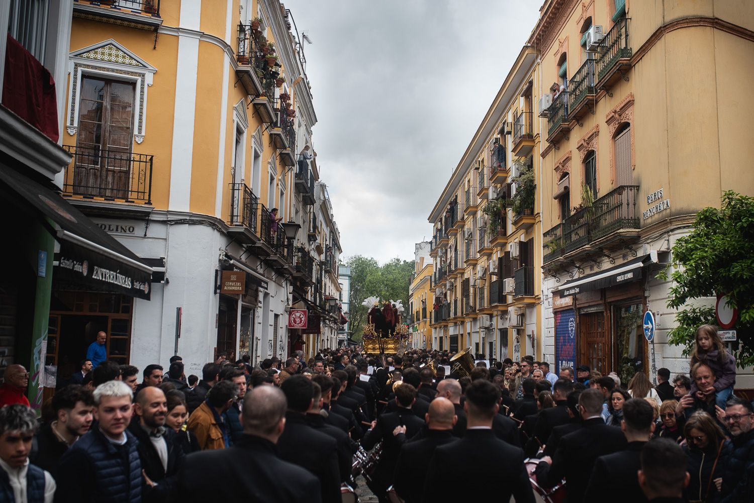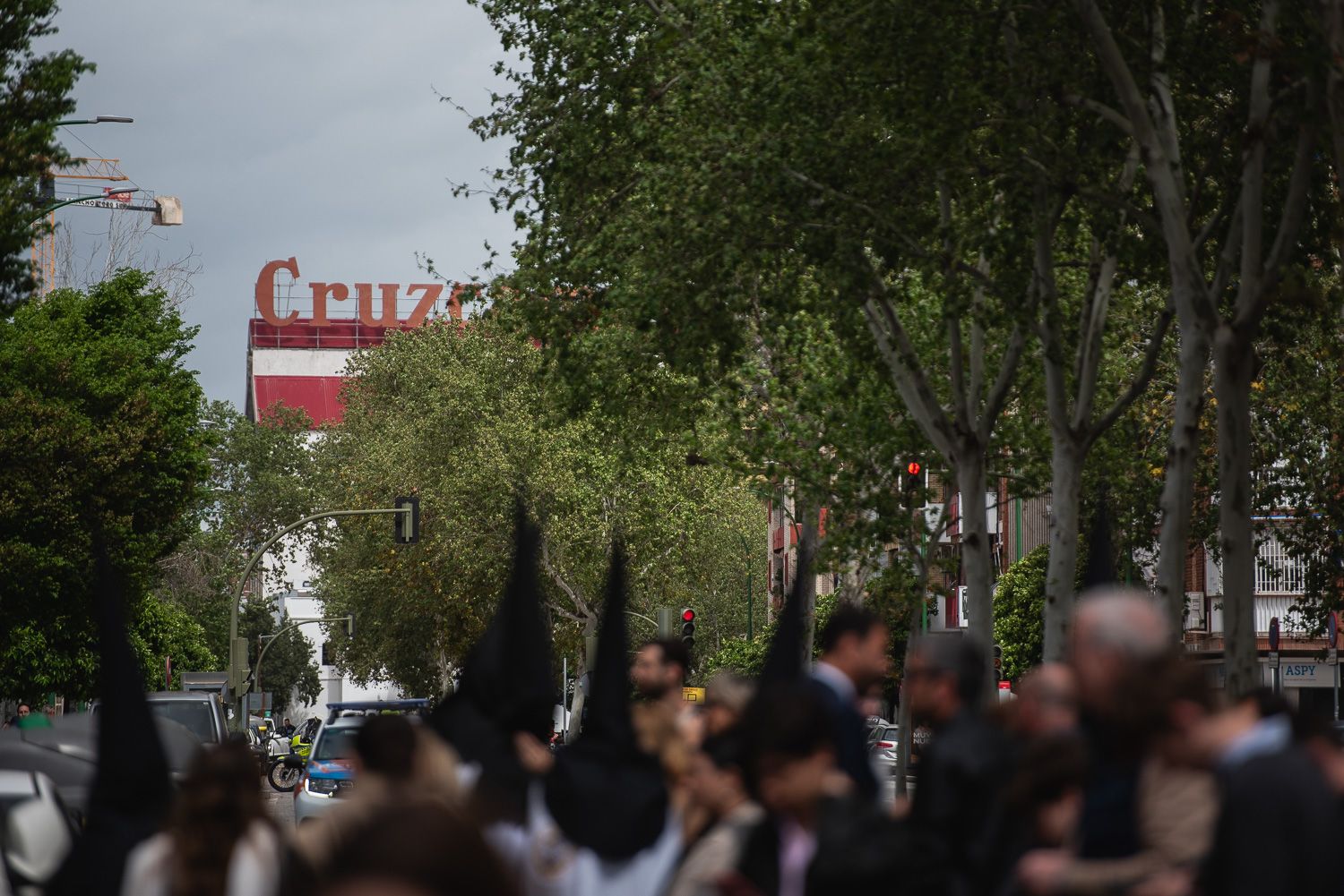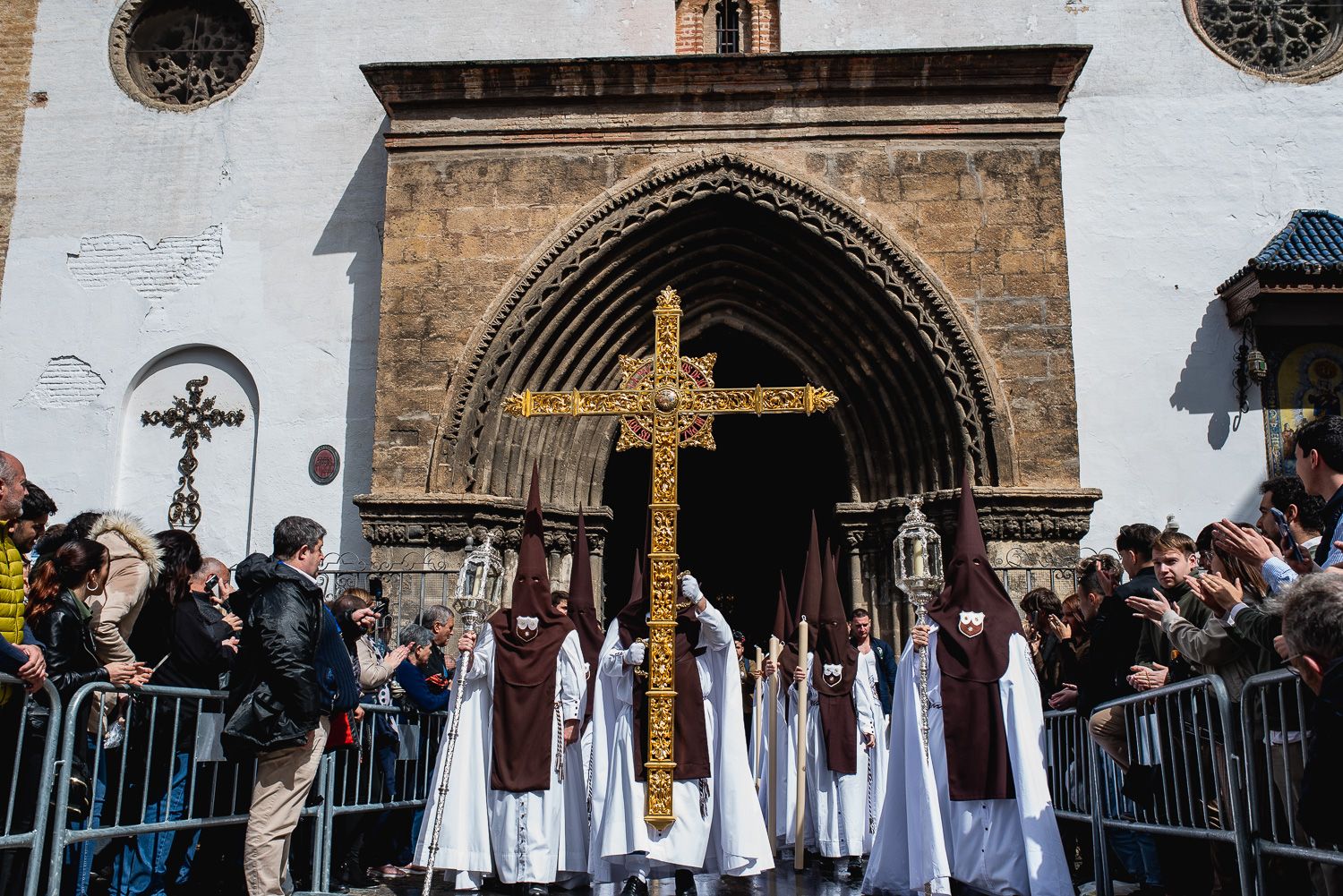 El Buen Fin y El Carmen Doloroso han puesto sus cruces de guía en la calle poco despues de las 15 horas. Esto significa que la Semana Santa de Sevilla va a poder disfrutar del estreno más importante de este año. El nuevo misterio del Buen Fin realizado por Darío Fernández ha salido desde el Convento de San Francisco de Padua camino de Campana bajo la incertidumbre de saber si lloverá o no. En cualquier caso, la Hermandad cuenta en su recorrido con lugares donde refugiarse.