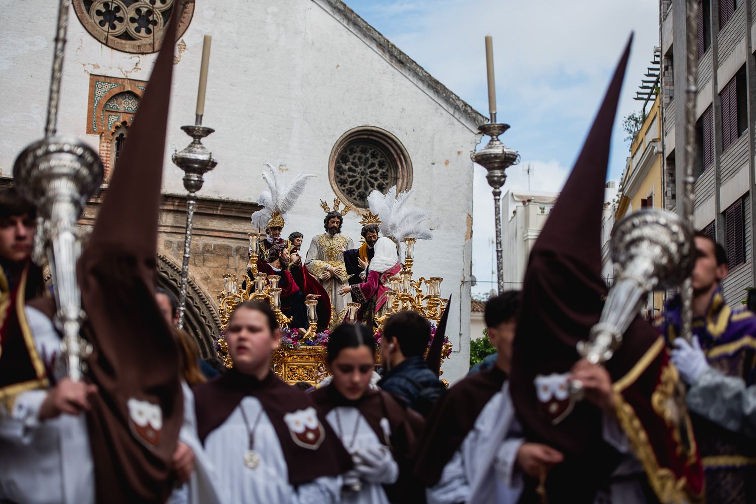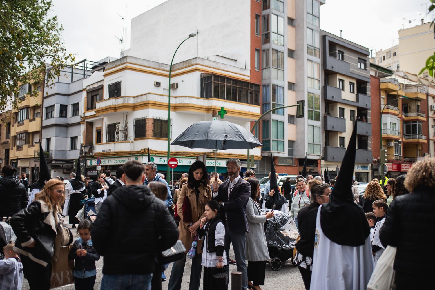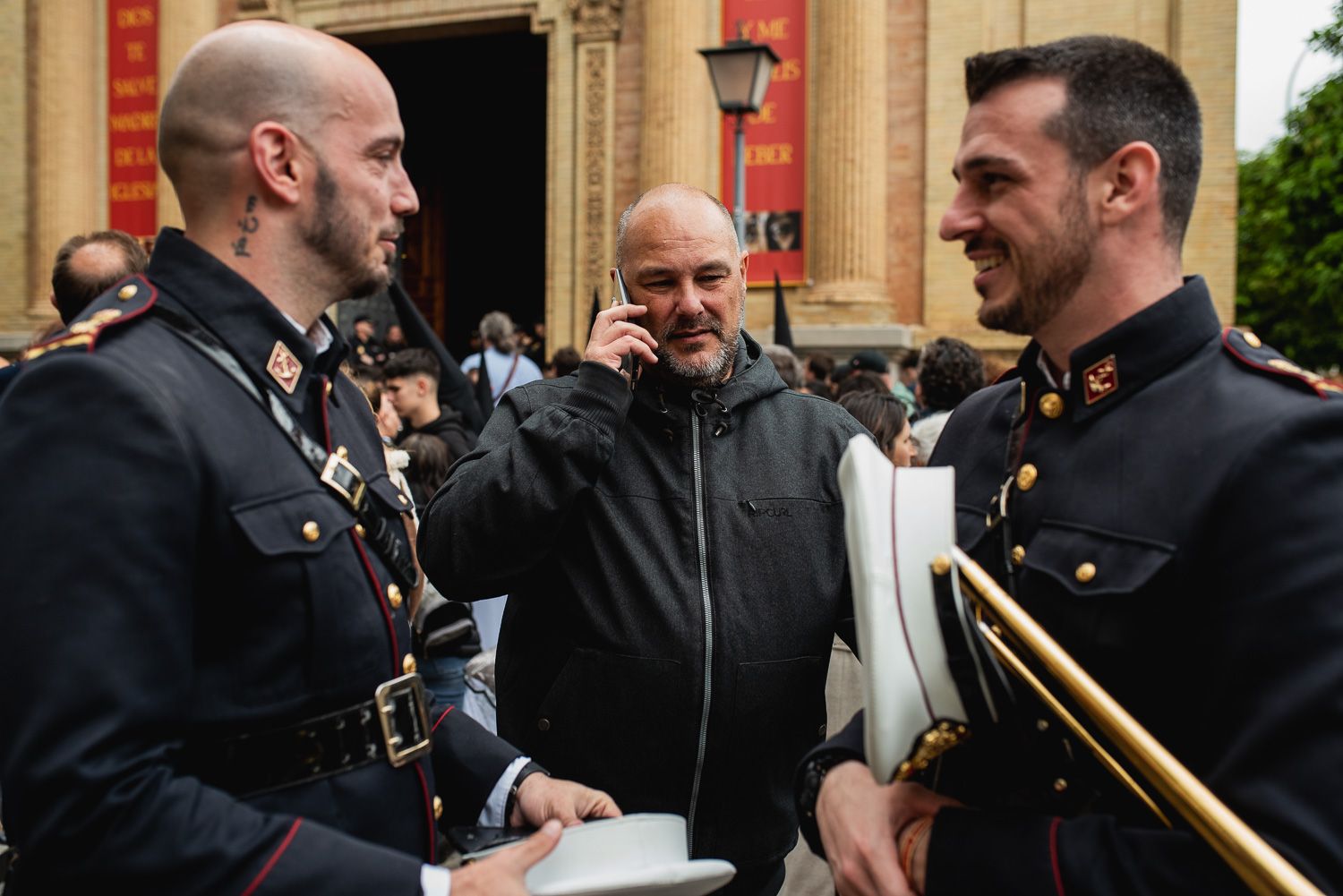 El Buen Fin y El Carmen Doloroso han puesto sus cruces de guía en la calle poco despues de las 15 horas. Esto significa que la Semana Santa de Sevilla va a poder disfrutar del estreno más importante de este año. El nuevo misterio del Buen Fin realizado por Darío Fernández ha salido desde el Convento de San Francisco de Padua camino de Campana bajo la incertidumbre de saber si lloverá o no. En cualquier caso, la Hermandad cuenta en su recorrido con lugares donde refugiarse.