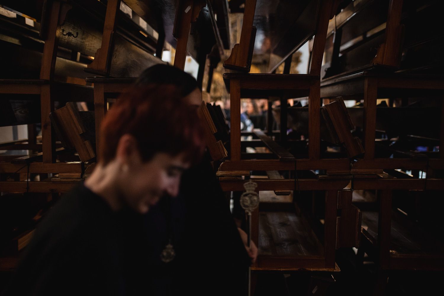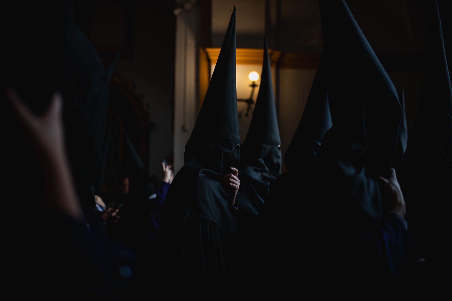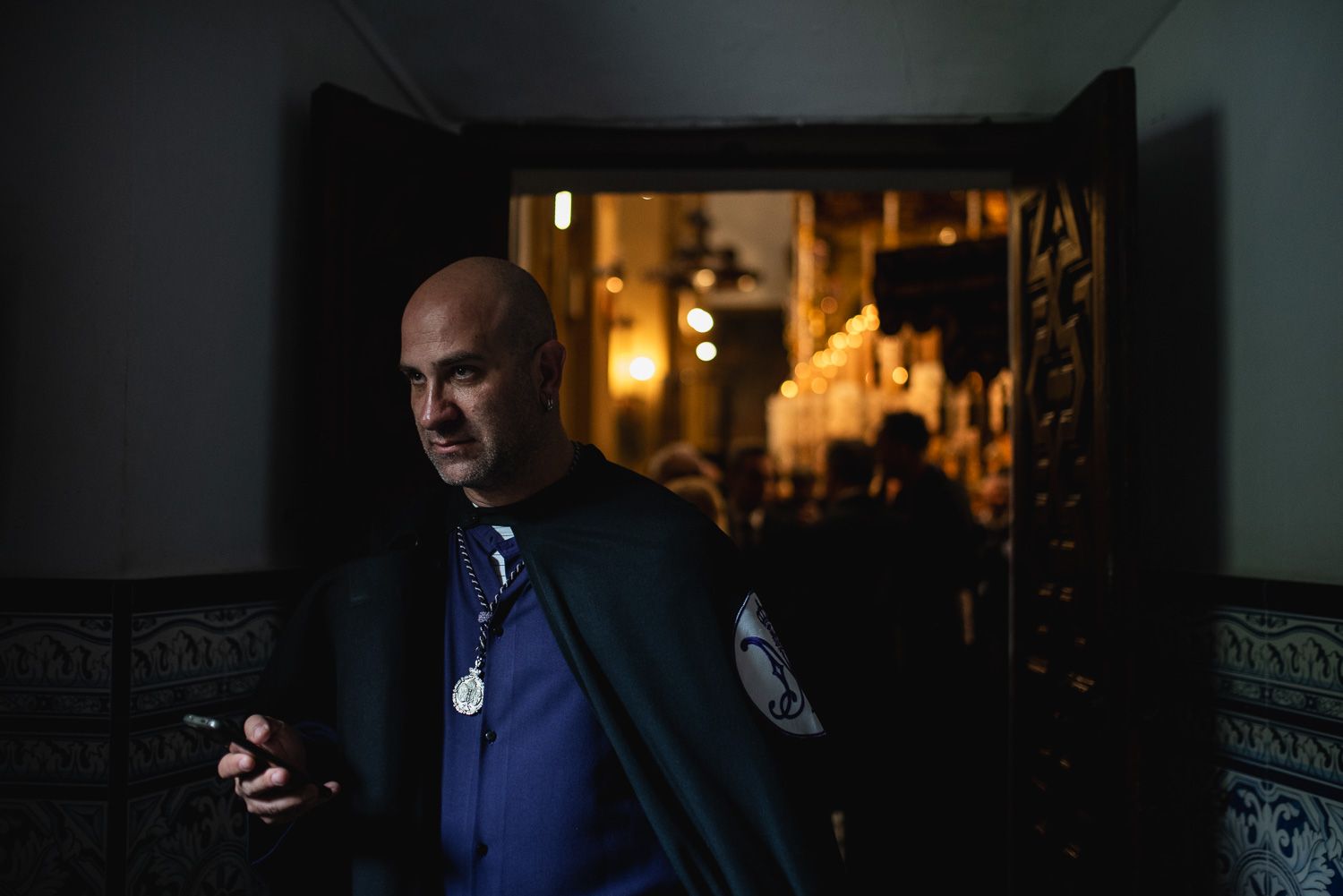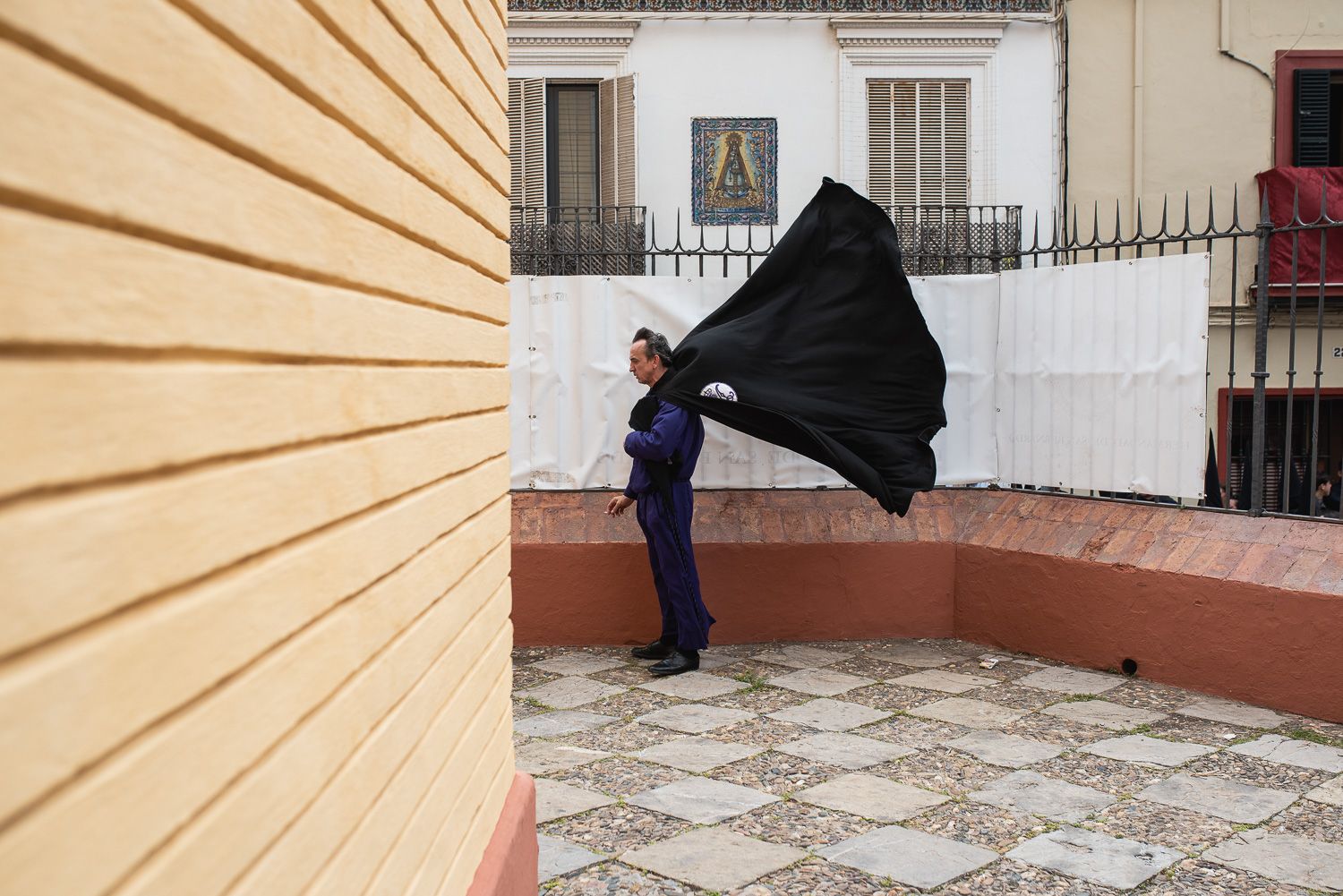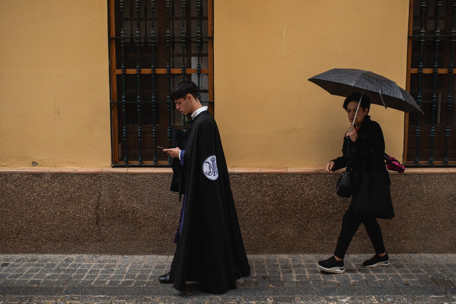 El tiempo marcó la pasada Semana Santa de Sevilla. En la imagen, un hermano de San Bernardo, que no pudo procesionar por la lluvia y el viento.