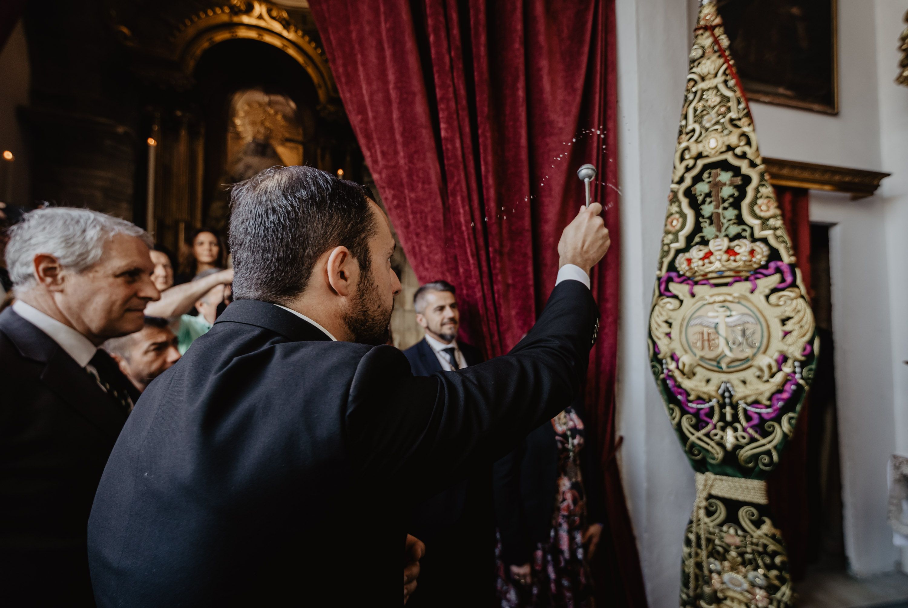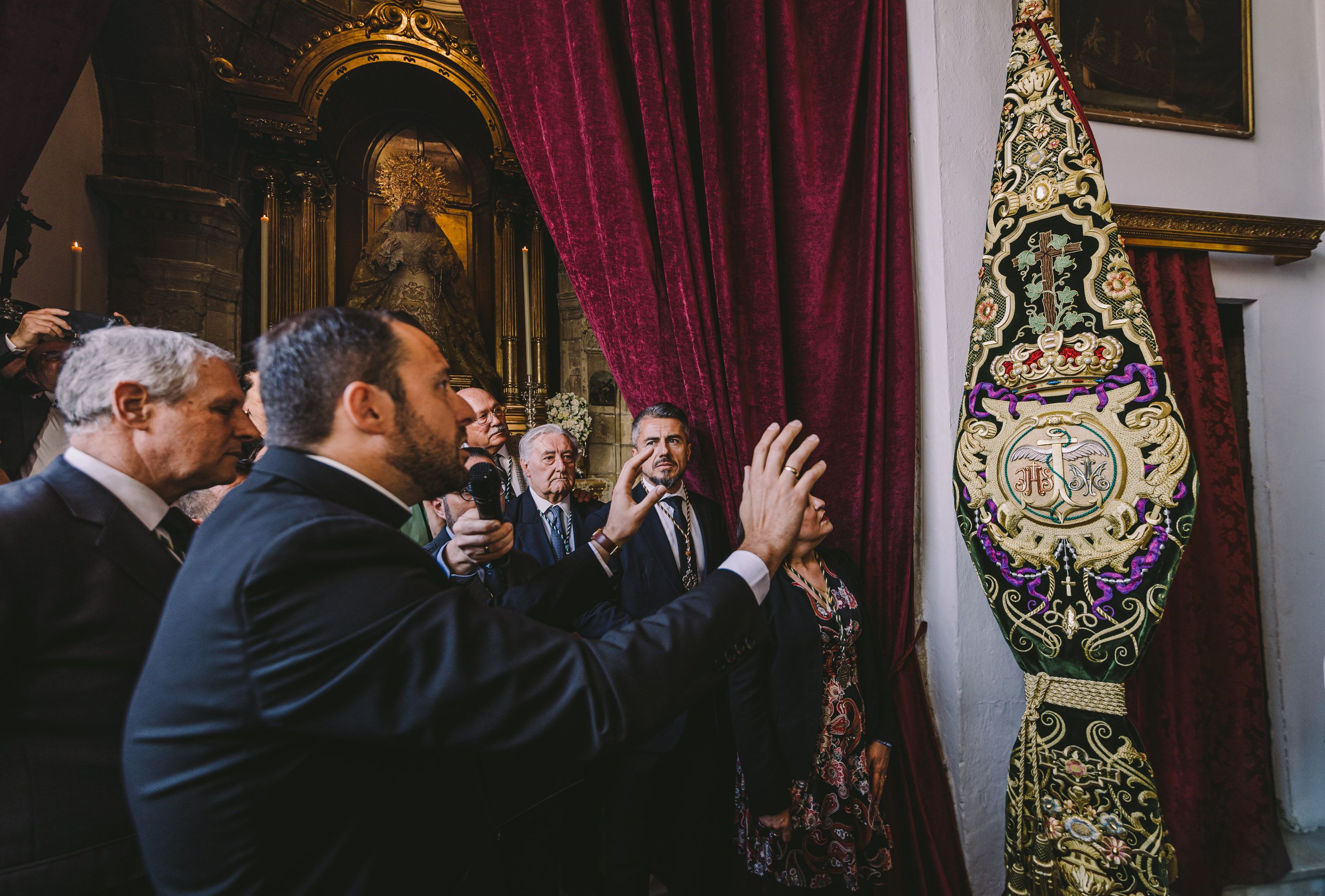 En el contexto del acto celebrado este martes, la hermandad lo aprovechó para llevar a cabo la bendición del soberbio nuevo estandarte de la cofradía. Este es obra del bordador Pedro Palenciano y con orfebrerías de los hermanos Delgado.