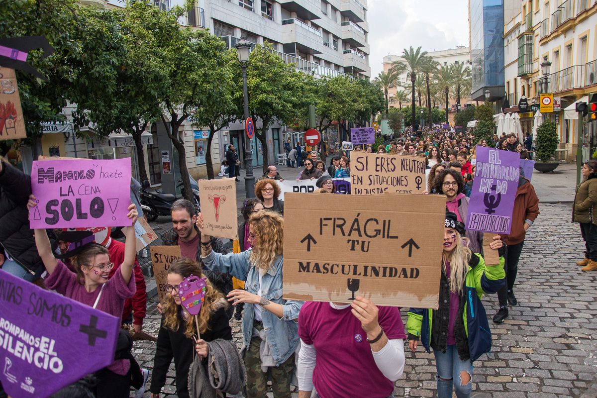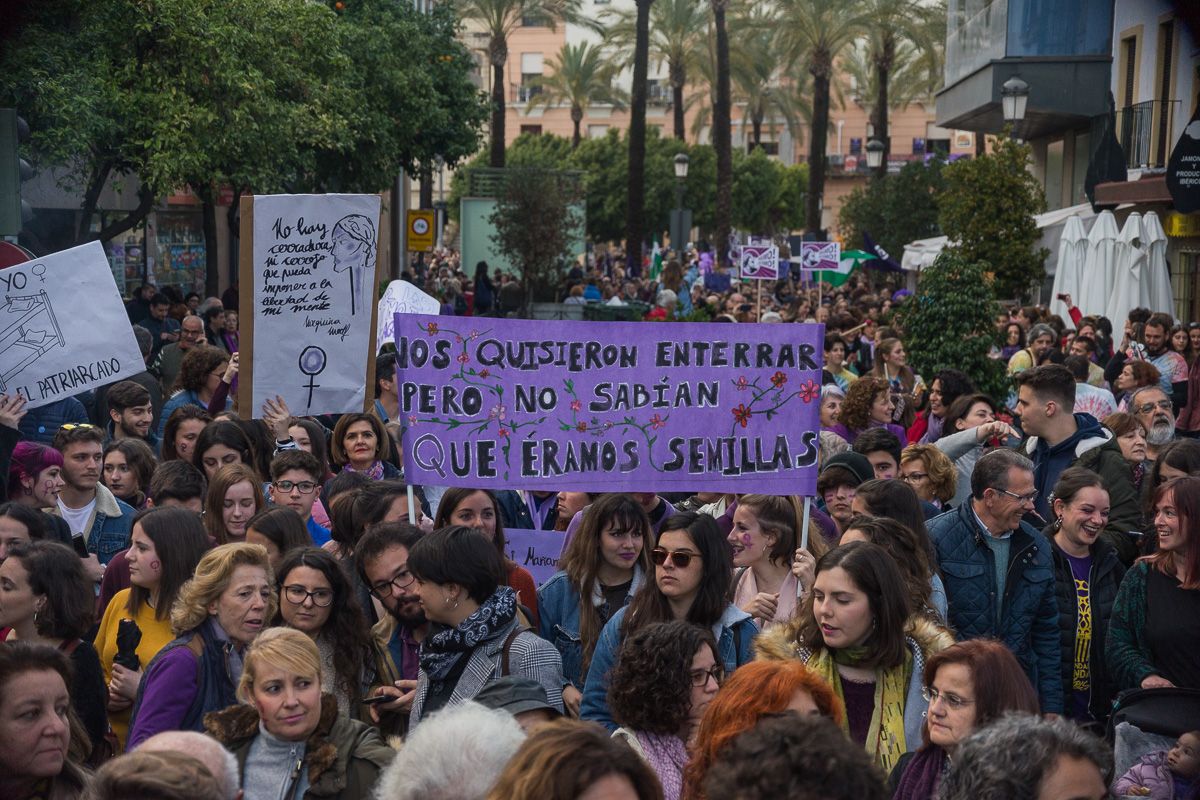 Un momento de la manifestación feminista del 8M de 2019 en Jerez.