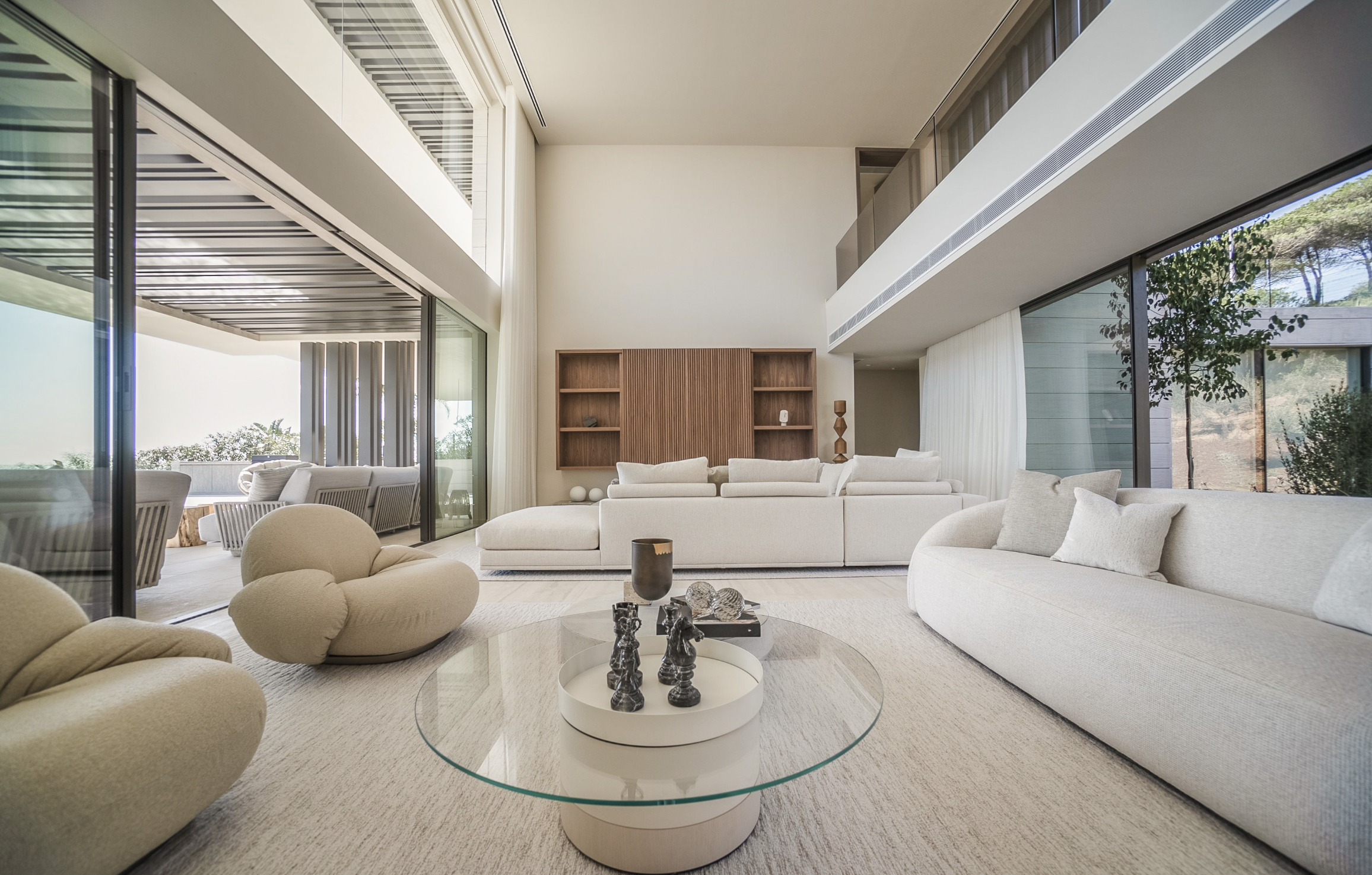 Como parte de la arquitectura contemporánea, en esta vivienda se utiliza el sistema de correderas minimalistas, con rotura de puente térmico y filtro solar, que consigue la armonía perfecta entre la vivienda y el entorno y una gran ligereza con aire vanguardista. De esta forma, se consigue fusionar toda la vivienda con su exterior, de tal forma que la arquitectura y su entorno se unen como un único elemento.