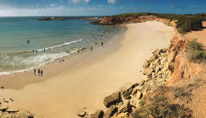 Situada a las afueras de Conil, Roche con cuenta con muchas calas donde el viento sopla un poco más suave. Debe su nombre al color anaranjado que toma las rocas de los pequeños acantilados con el sol del atardecer. Es la cala de Roche que cuenta con más servicios, y entre los que podemos destacar el restaurante que se encuentra sobre los acantilados.