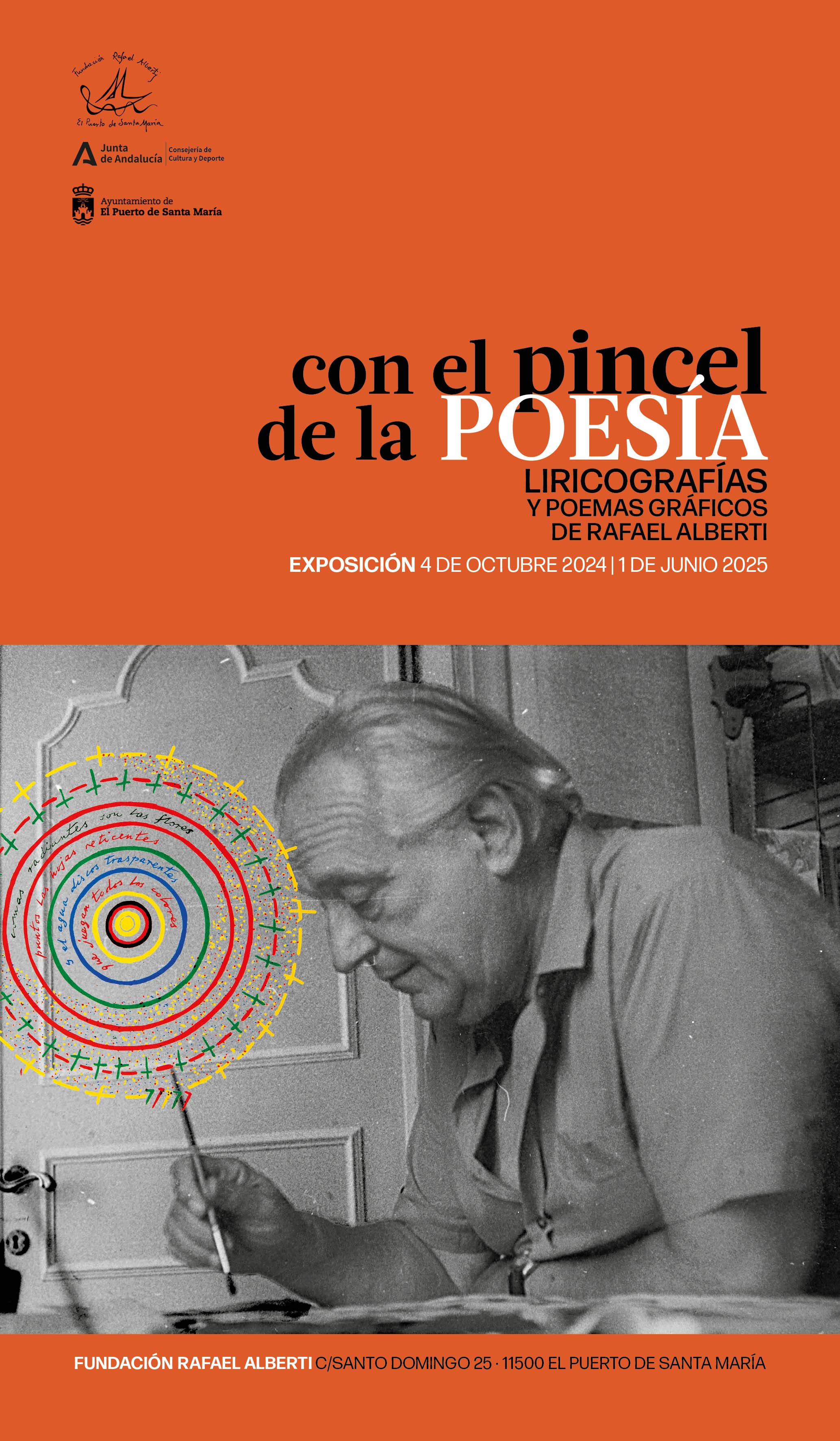 El viernes 4 de octubre por la tarde, se desarrollará la inauguración de la exposición titulada "Con el pincel de la poesía", muestra que recoge las liricografías y poemas gráficos de Rafael Alberti, y que permanecerá expuesta en la Sala de exposiciones de la propia Fundación hasta el 1 de junio de 2025.