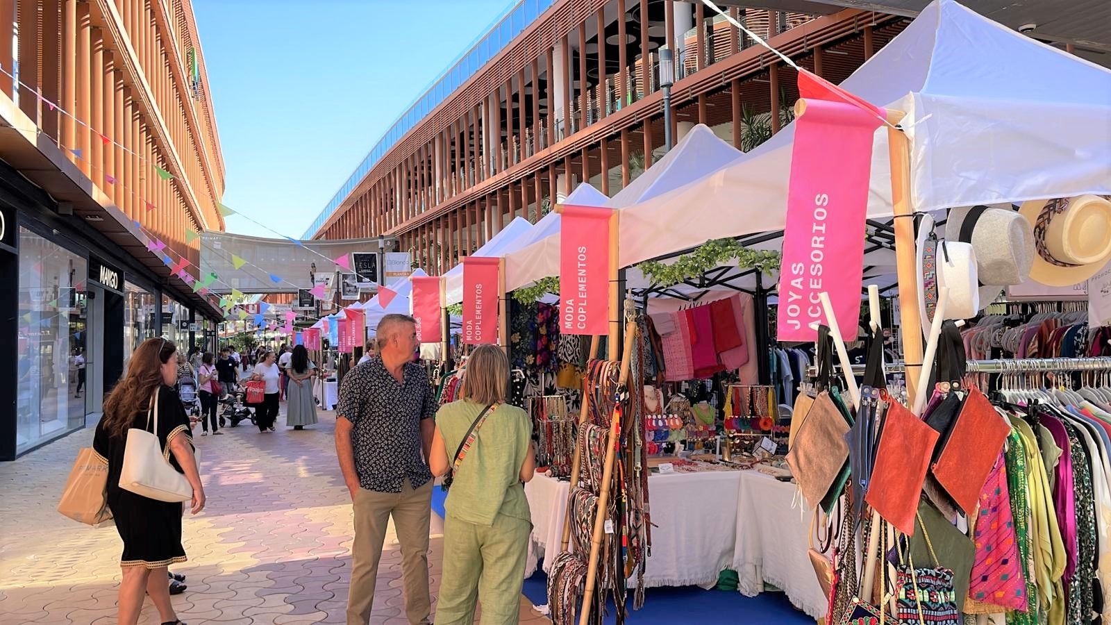 En la oferta de moda femenina destacan Alondra Brand, Soraya Moreno, Lunaires, Hamba Shop y Mayller en la colección de fiesta, así como Estudio 8 Vintage con una selección de moda y complementos vintage. Además, marcas como Majia Tienda y By little Indian exhibirán su catálogo de moda y complementos infantiles cosidos a mano, mientras que Ponte Color presentará vestidos de seda importados desde India por su fundador, y Alcazar design mostrará moda flamenca para el día a día.