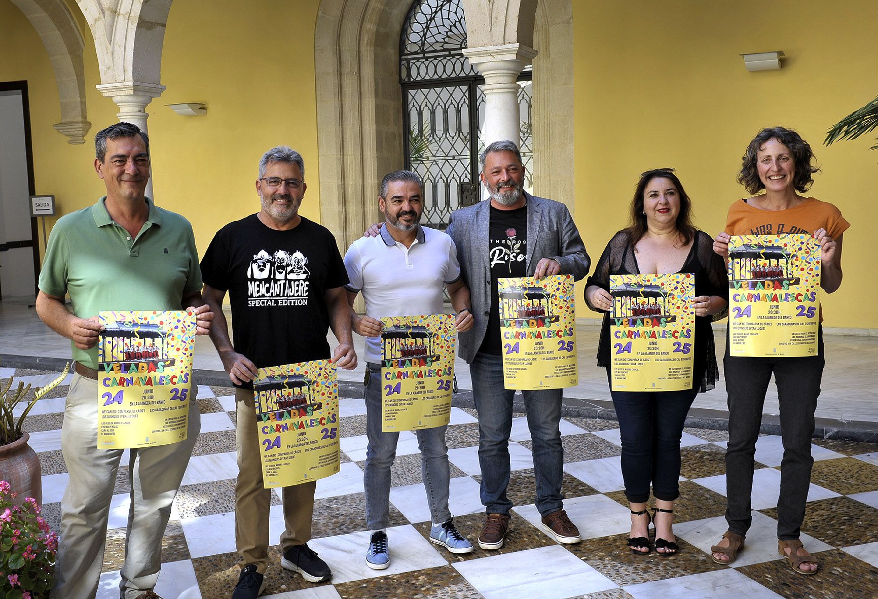 Rubén Pérez, delegado de Fiestas, ha presentado las Veladas Carnavalescas en Jerez junto a Kika González, representante de Ganemos Jerez, y Pedro Romero, portavoz de la coordinadora Jerez Carnavalea. Esta cita tendrá lugar los días 24 y 25 junio en la Alameda del Banco a partir de las 20.30 horas.