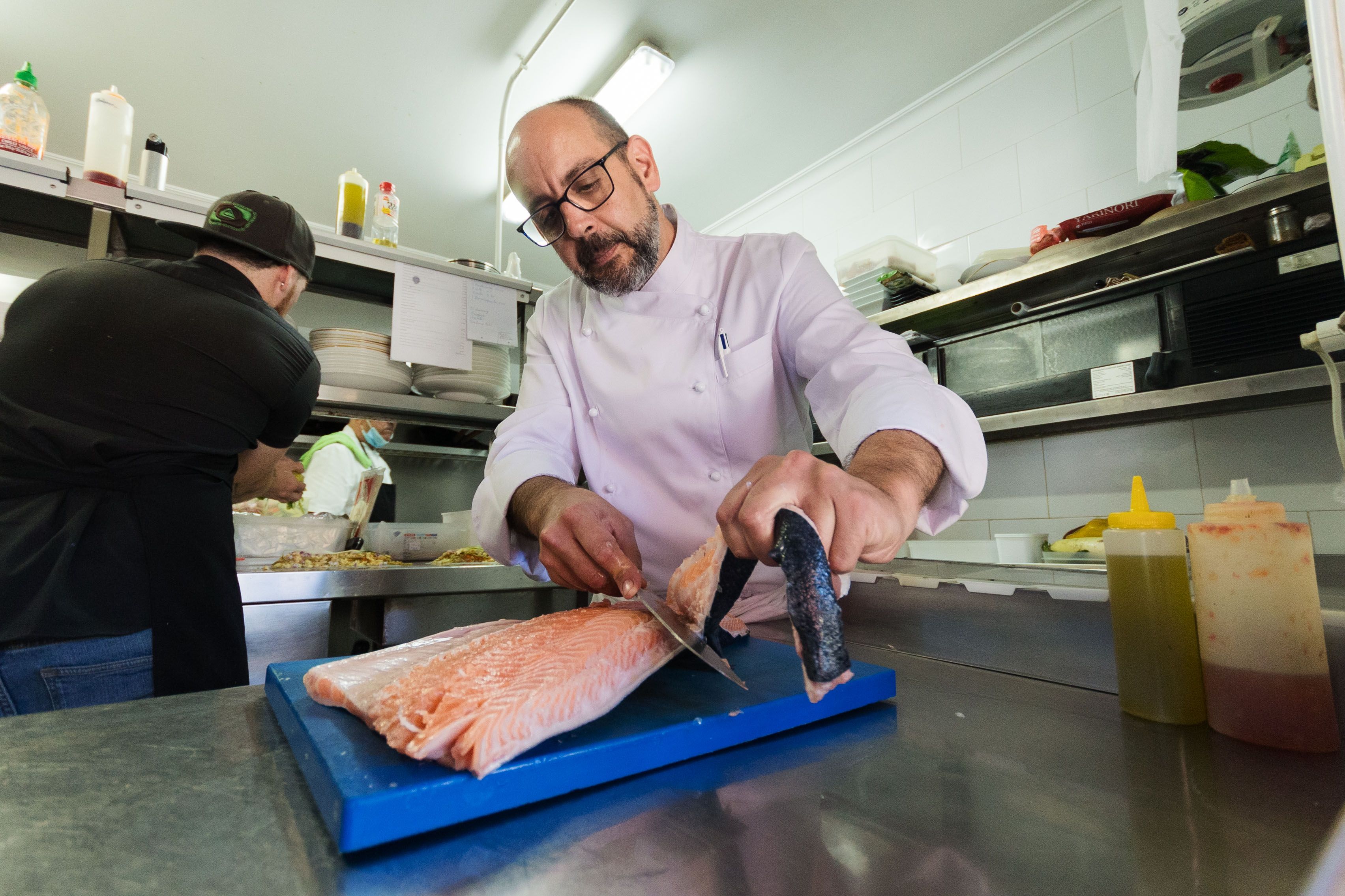 A la variedad de sushi, nigiri, pad thai, arroz frito o sashimi se suma “el pescadito a la sal”, lubina, dorada, corvina, rodaballo y otras especies. Unos clientes están a punto de probar los summer rolls, un clásico de Ajedrez, formado por rollitos frescos de verdura con salsa agridulce. “El chef siempre recomienda comerlo con las manos, untarlo en la salsa y directo a la boca”, explica Néstor mientras Paco termina de emplatar sashimi de atún con salicornia de los esteros.
