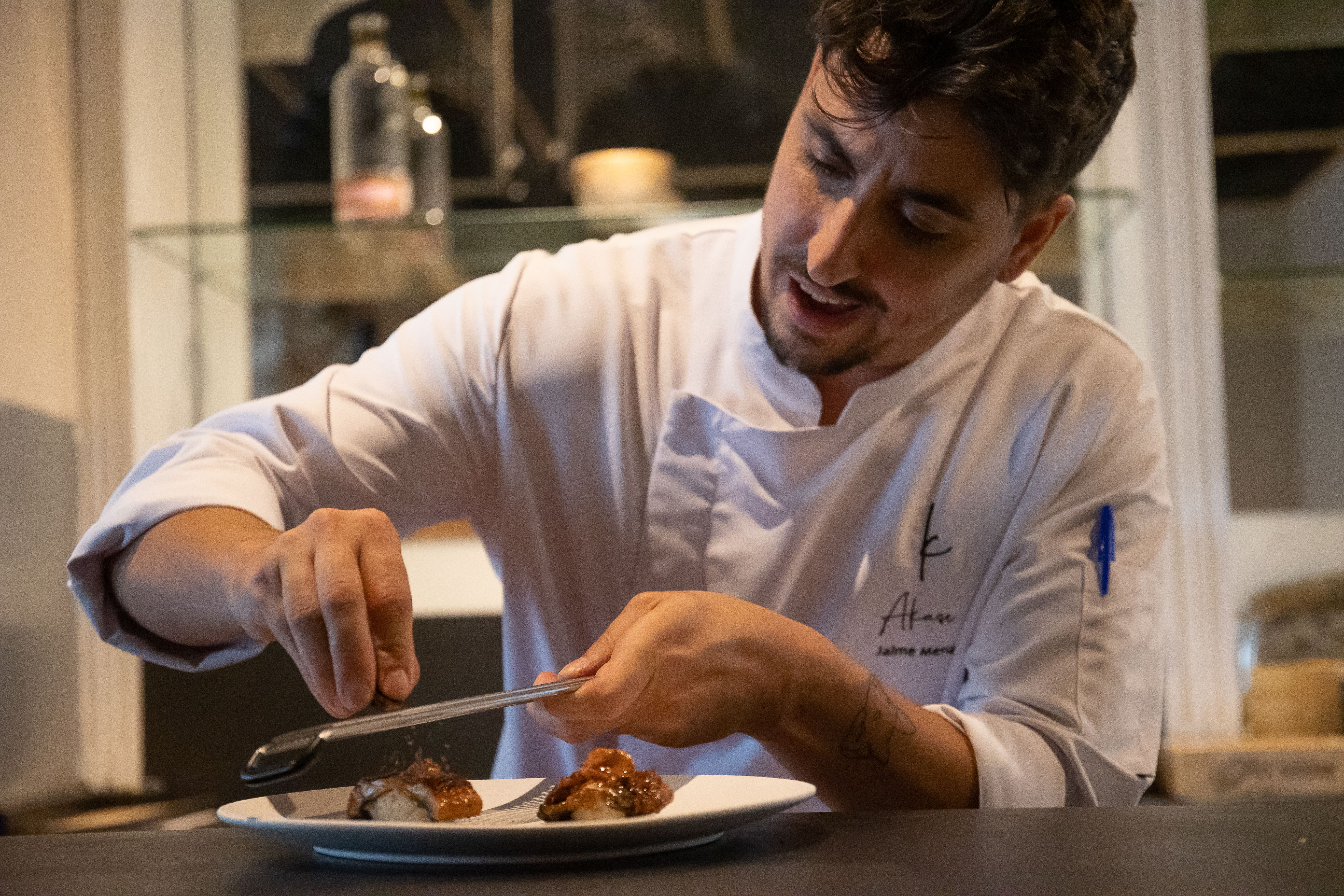 Bajo el nombre de Akase —que proviene de la expresión nipona omakase, "la elección del chef", ese "me fío de lo que me pongas" muy popular en las barras tradicionales japonesas—, Jaime Mena (32 años) e Iván Bautista (27) se han puesto al frente de su propio establecimento con toda la ilusión del mundo y casi como "un hobby" en estos comienzos. Ambos venían del mundo de las grandes salas de hoteles de Mallorca o de "dar de comer a cientos de personas" en cáterings, por lo que ahora justo querían crecer por el otro extremo: pocos clientes, pero mucha calidad en los platos y mejor servicio en sala. "Queríamos un trato más exclusivo con el cliente porque eso también te hace mejorar mucho", cuentan.