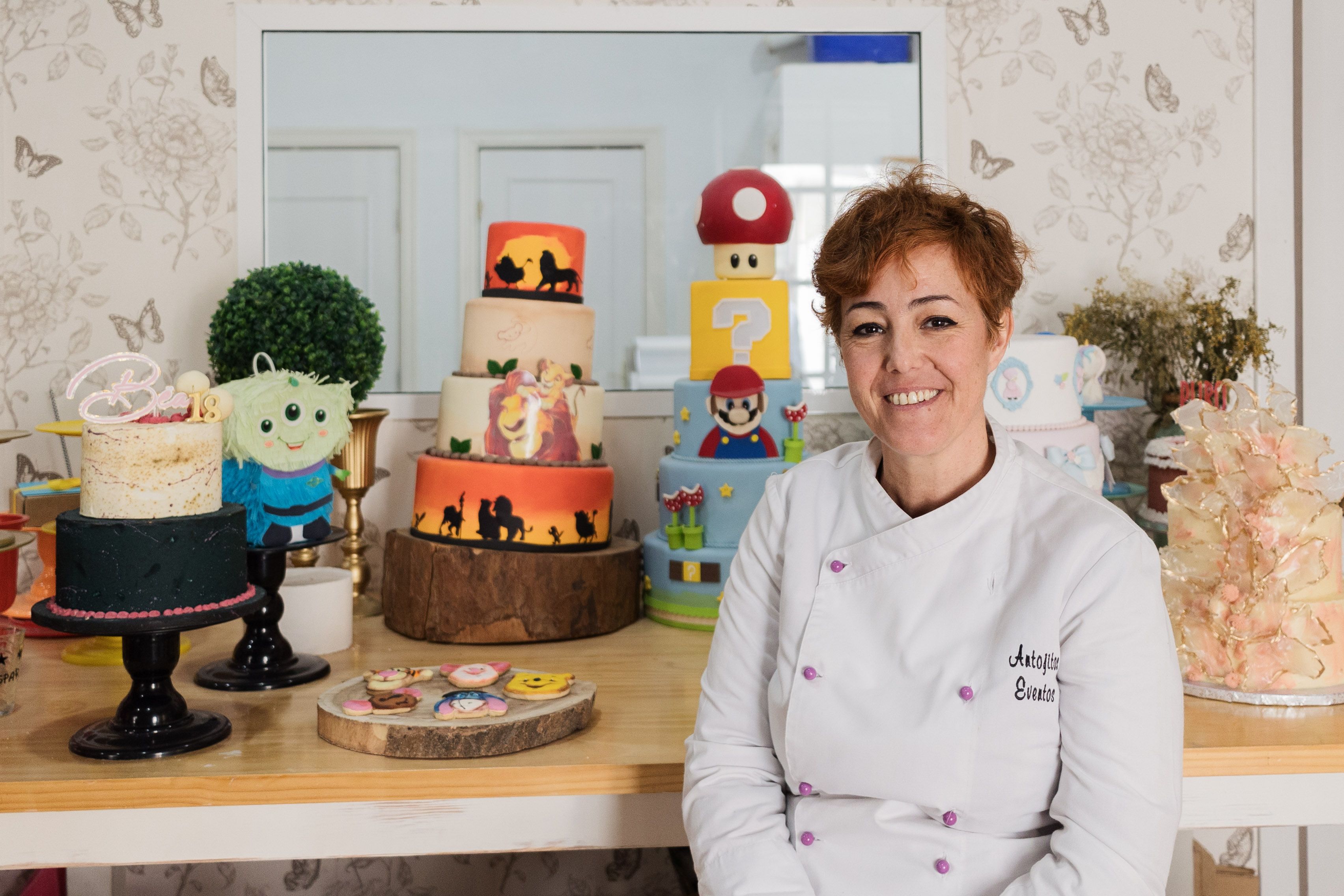 En su obrador, ubicado en El Puerto, la pastelera de 43 años elabora un bizcocho genovés. A su lado, se observa un carrito repleto de pinceles y botes de todos los colores, propios de cualquier artista que realiza cuadros. En su caso, sus lienzos son la base de cualquier tarta y no se cuelgan, se comen. Su especialidad es la repostería creativa, piezas que ya ha cautivado no solo la vista sino también el paladar de muchas personas.