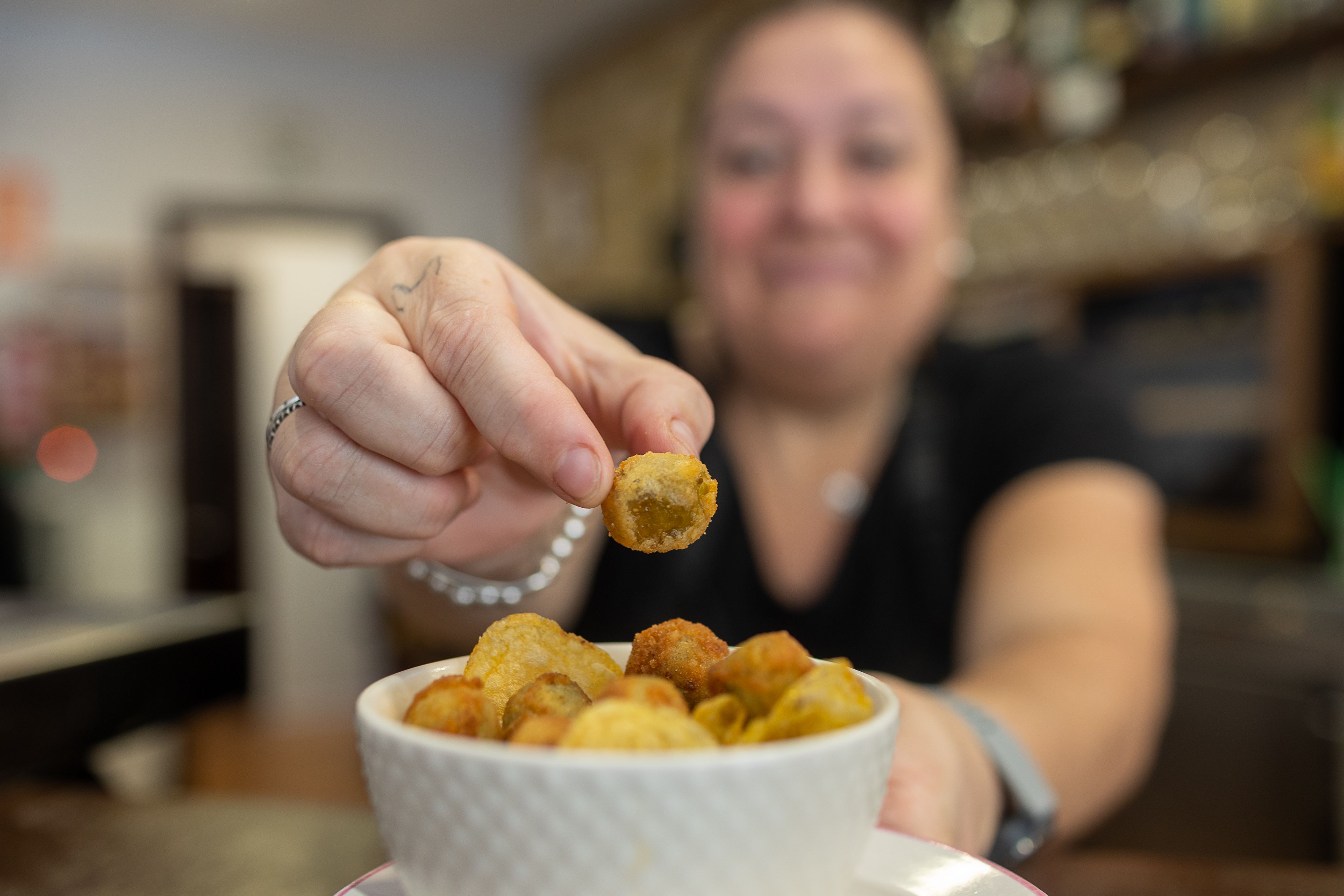 A veces es posible encontrar maravillas en peligro de extinción como los champiñones al romero y la ropa vieja. Sin tomate frito, por favor, que se trata de un establecimiento de gente seria. Divertidas las aceitunas fritas. "Las descubrimos en un convite de boda", recuerda Vanesa con una enorme sonrisa. Porque el cuaderno siempre hay que actualizarlo, completarlo.
