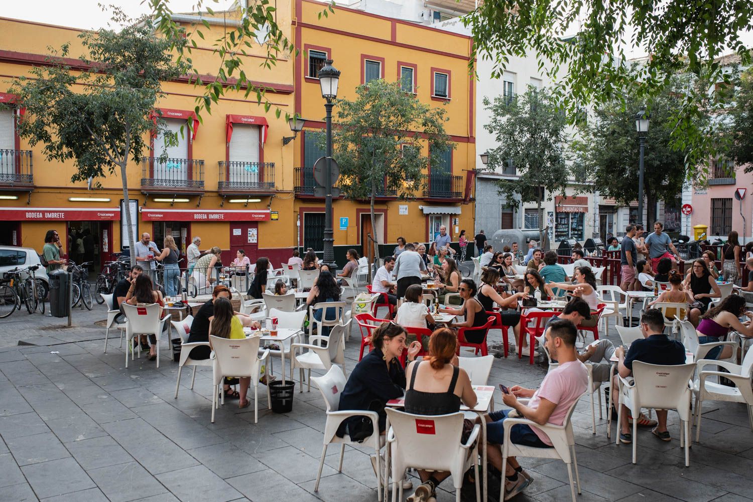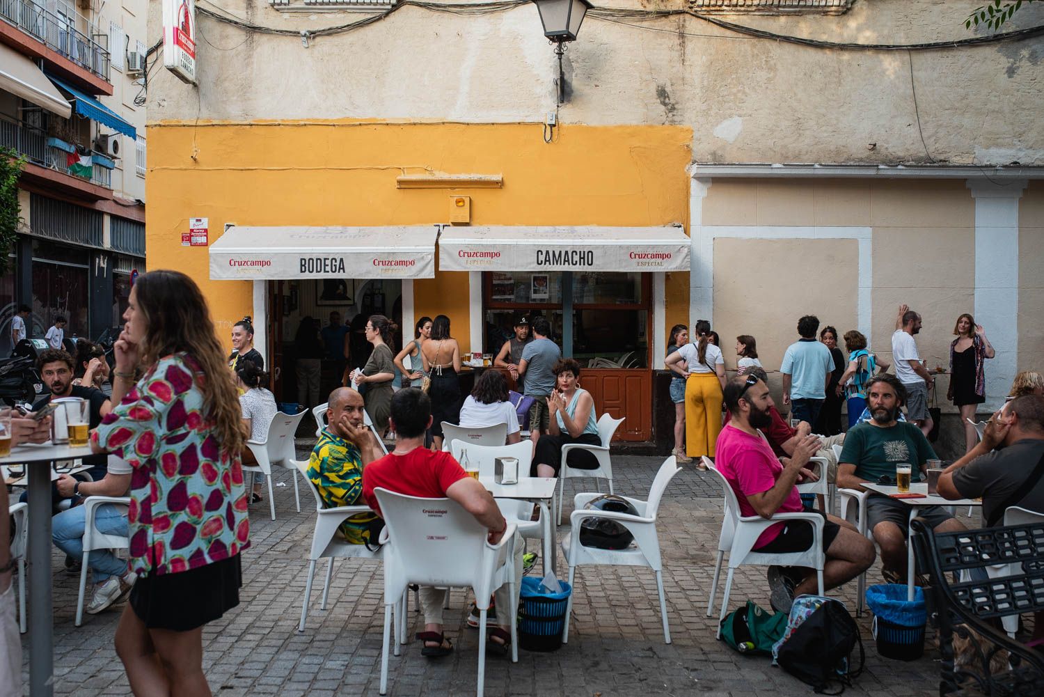 Ambos negocios empezaron con el vino. Pero como fueron cambiando los gustos en Sevilla, un viernes por la noche no hay más que pasear para observar las mesas con vasitos repletos de dorado. Y así seguirán hasta que prácticamente acabe junio, o incluso principios de julio, para que los caracoles se acaben y los sevillanos queden huérfanos de succión.