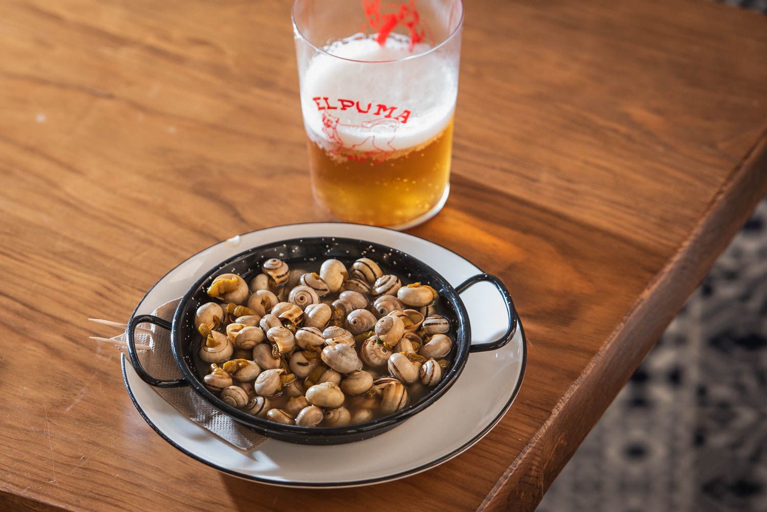 No hay que ir al siglo XX para entender por qué es un templo del caracol la plaza del Pumarejo. Del bar El Puma, abierto hace 3 años, hay una historia más reciente. "Empecé haciendo caracoles en pandemia", cuenta su cocinero, Jose. "No tenía trabajo y solo podía ir al mercado. Los sabía hacer más o menos, así que un día compré un kilo. Me sobraron y le di a un vecino". Aquel compañero del barrio le conminó a seguir: "Cuando hagas, yo quiero y te los compro".