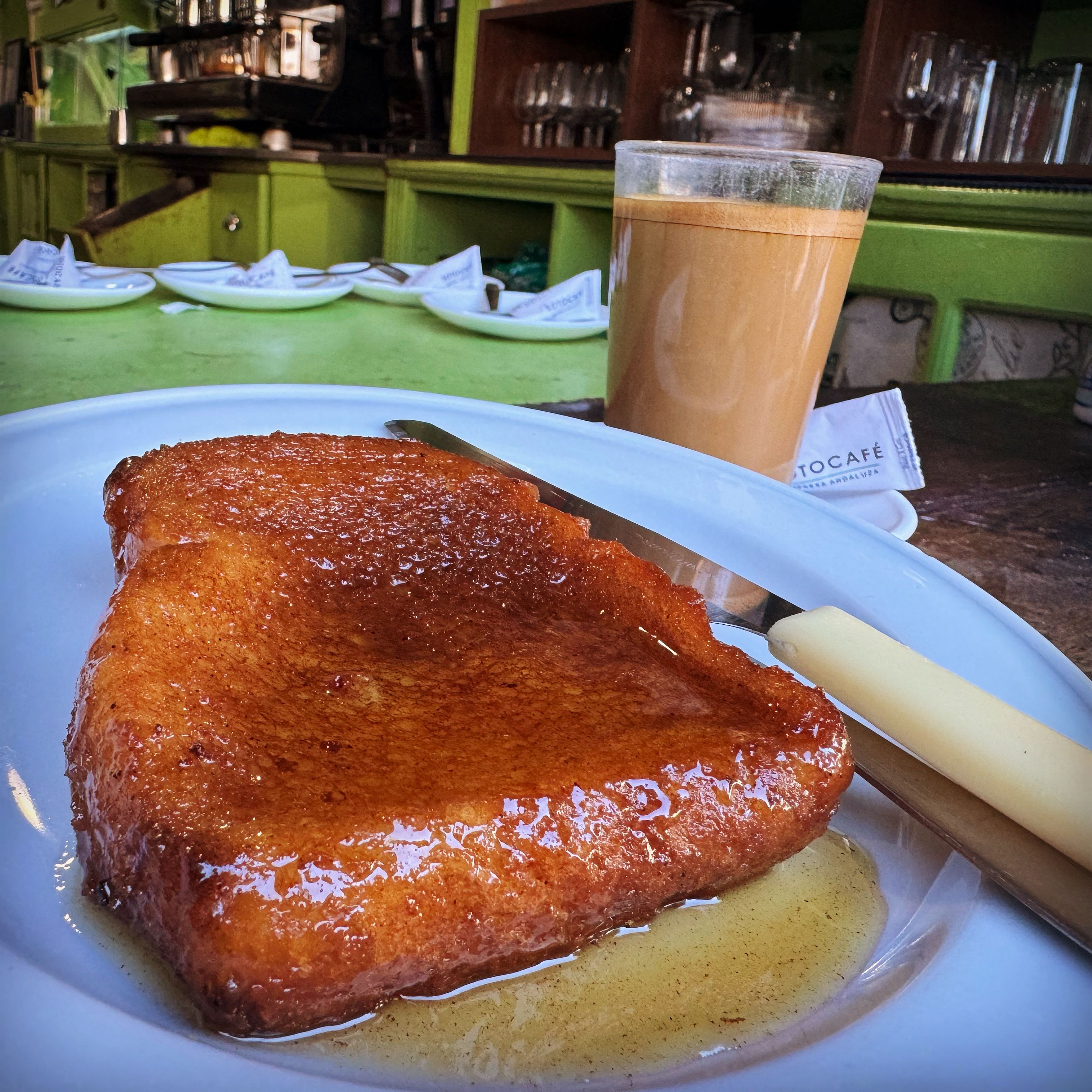 Pegado al lienzo de la muralla medieval que protegía el Jerez de antaño se encuentra una pequeña pastelería y cafetería donde poder degustar un buen café junto a una torrija como Dios manda, nunca mejor dicho. Además, no siempre se tiene la oportunidad de estar sentado frente al Señor de la Puerta Real o esperar a que abran la Iglesia de los Remedios para visitarla.