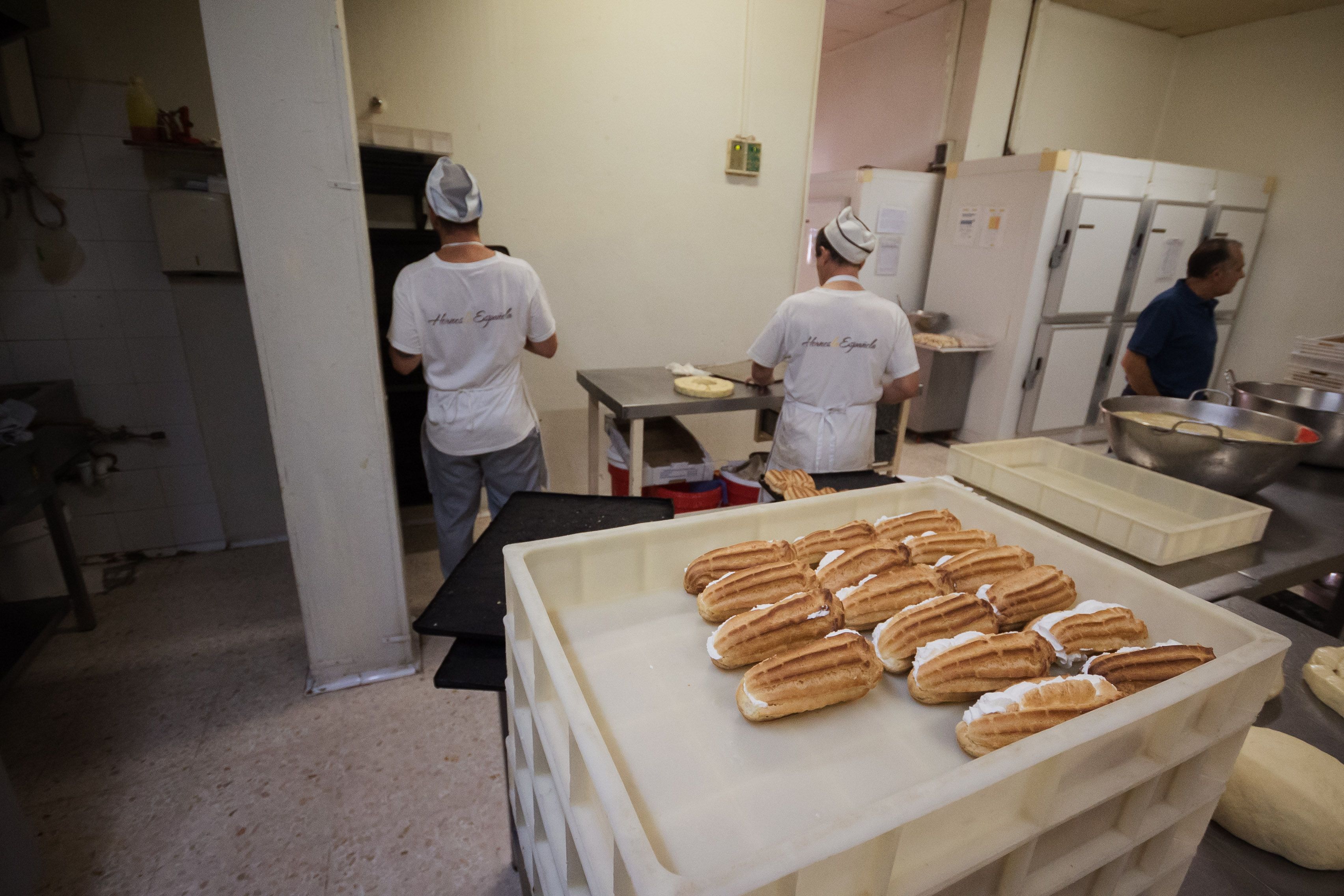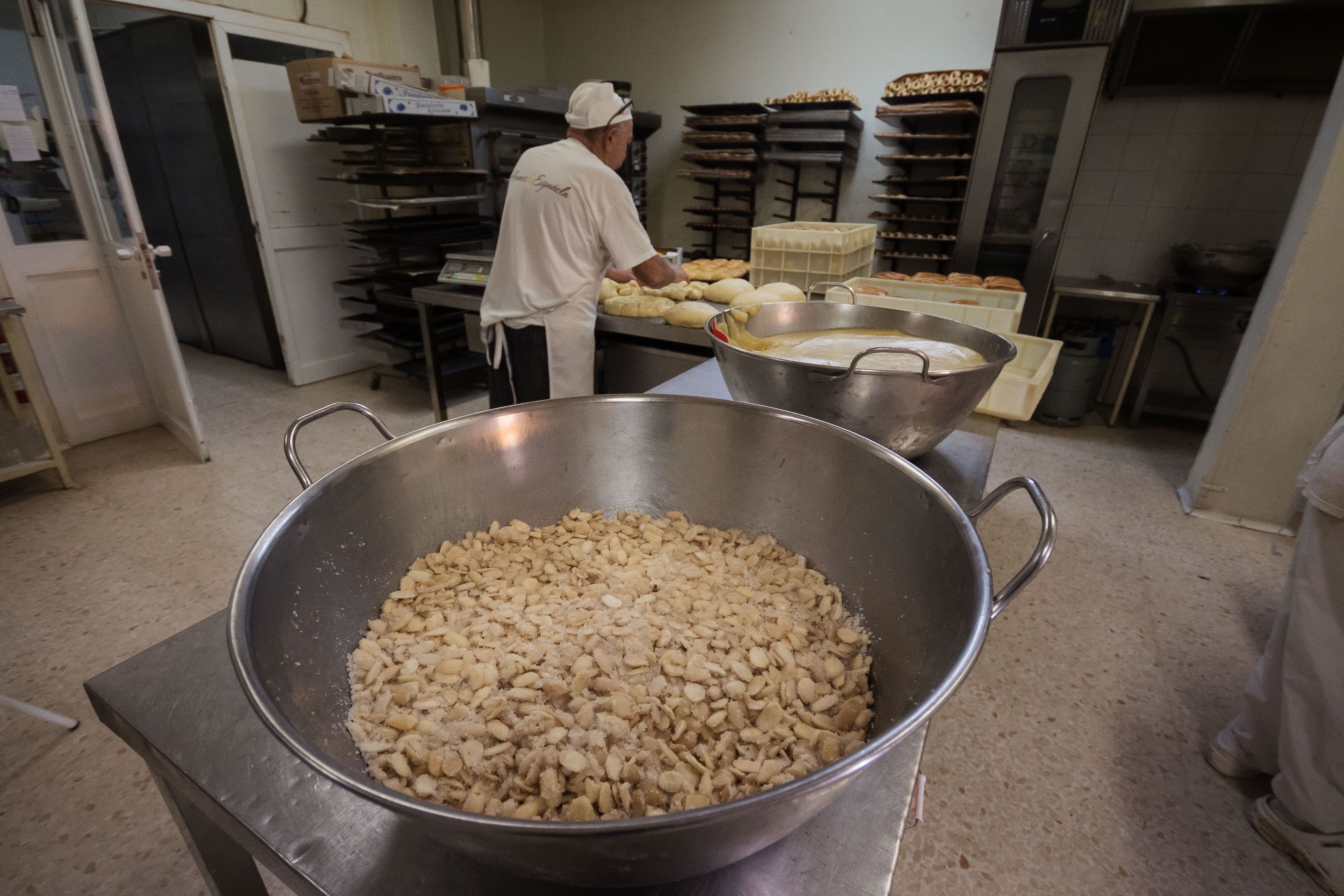 En su obrador no solo hay pastas, también ofrecen dulces tradicionales que llevan años triunfando en las meriendas. Paco, el maestro pastelero, bolea la masa para hacer medias lunas. “Llevo 45 años aquí”, dice el veterano sin quitar ojo a los ingredientes.