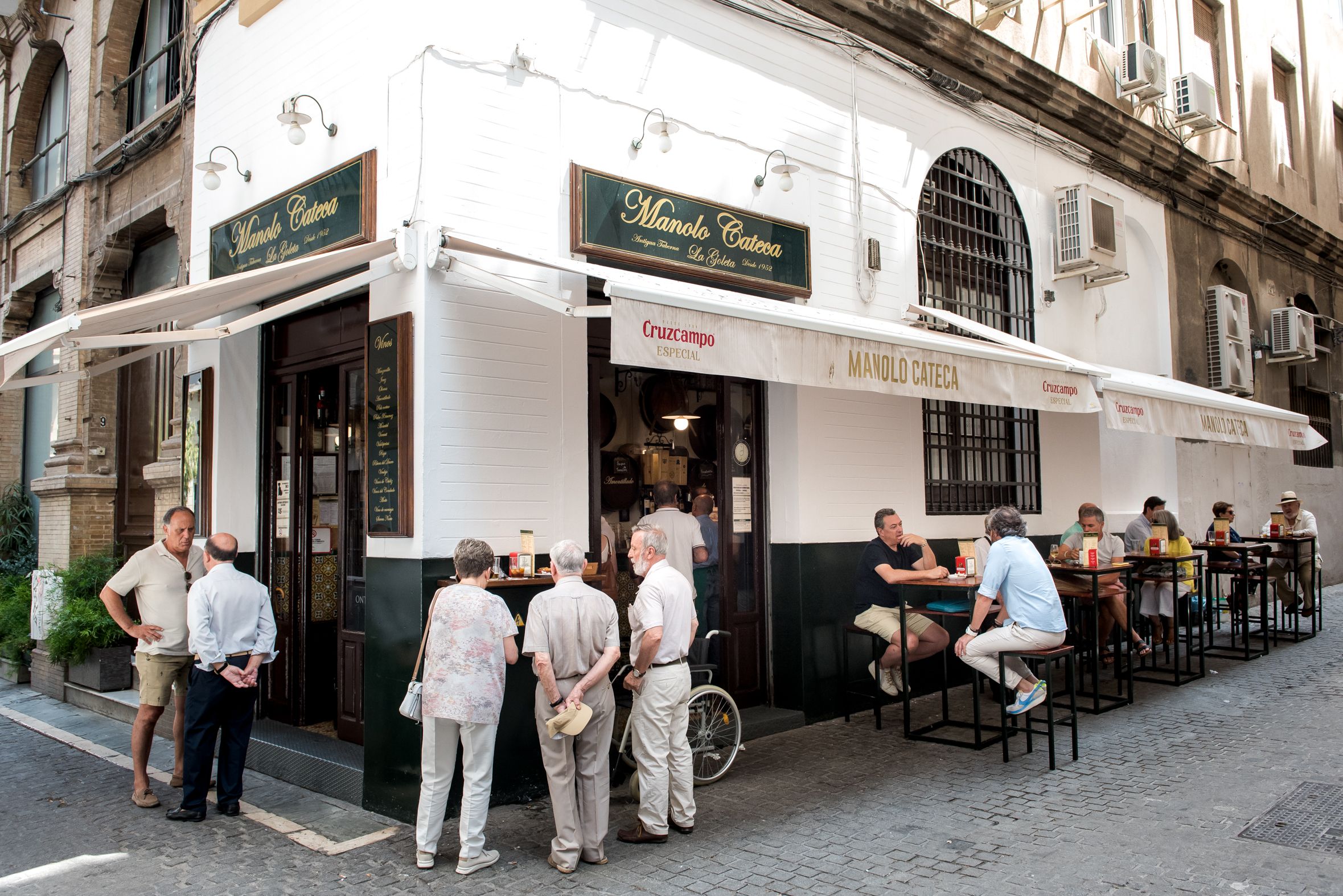 Bares, tabernas y cervecerías, que en buena parte se han librado, de momento, de la marea turística que nos invade, bendición para algunos y maldición para otros. Yo creo que hay dos factores importantes para mantener a los guiris alejados de estos sitios, que no haya mesas y que no haya tapas. Vean si no como ha sucumbido el bar Las Columnas de Mateos Gago, otrora en la ruta local de cañas baratas y hoy refugio de chicas con chanclas y americanos con pecas, meca de usuarios Erasmus. Otros se libran por estar lejos del centro, como la Cervecería Arturo en Sevilla Este, otro templo para devotos fieles cerveceros. Al contrario, y perdiendo algo de su esencia, en pleno centro, ahora con muchas mesas y algunas tapas, montaditos y caracoles en su época, La Mina de la Cuesta del Rosario o, todavía con más tapas, de hecho, con una cocina muy estimable, La Antigua Bodeguita de El Salvador.
