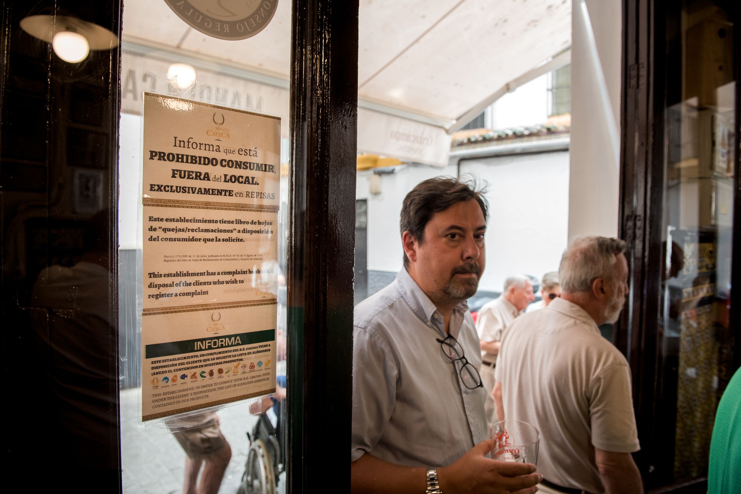 De ese lema con tufillo golpista, que tanta gracia hizo a la oposición al anterior alcalde, el socialista Antonio Muñoz, "los tanques a la calle", hemos pasado con el jefe municipal actual, José Luis Sanz, a sacar las cañas y los tanques pero con horario restringido. La norma anunciada se da de cara con las costumbres indígenas, cuatro horas para el consumo a pie de calle, nada menos, y nada más, de 12:00 a 14:00 a mediodía, o sea, los dueños de los bares deben de espantar a la parroquia a la hora que el sevillano empieza a llegar a la barra. Hay quien dice que esta norma es otro guiño al turismo, el mismo que, mayoritariamente, ignora las claves tradicionales de la ciudad, ni tienen por qué claro.