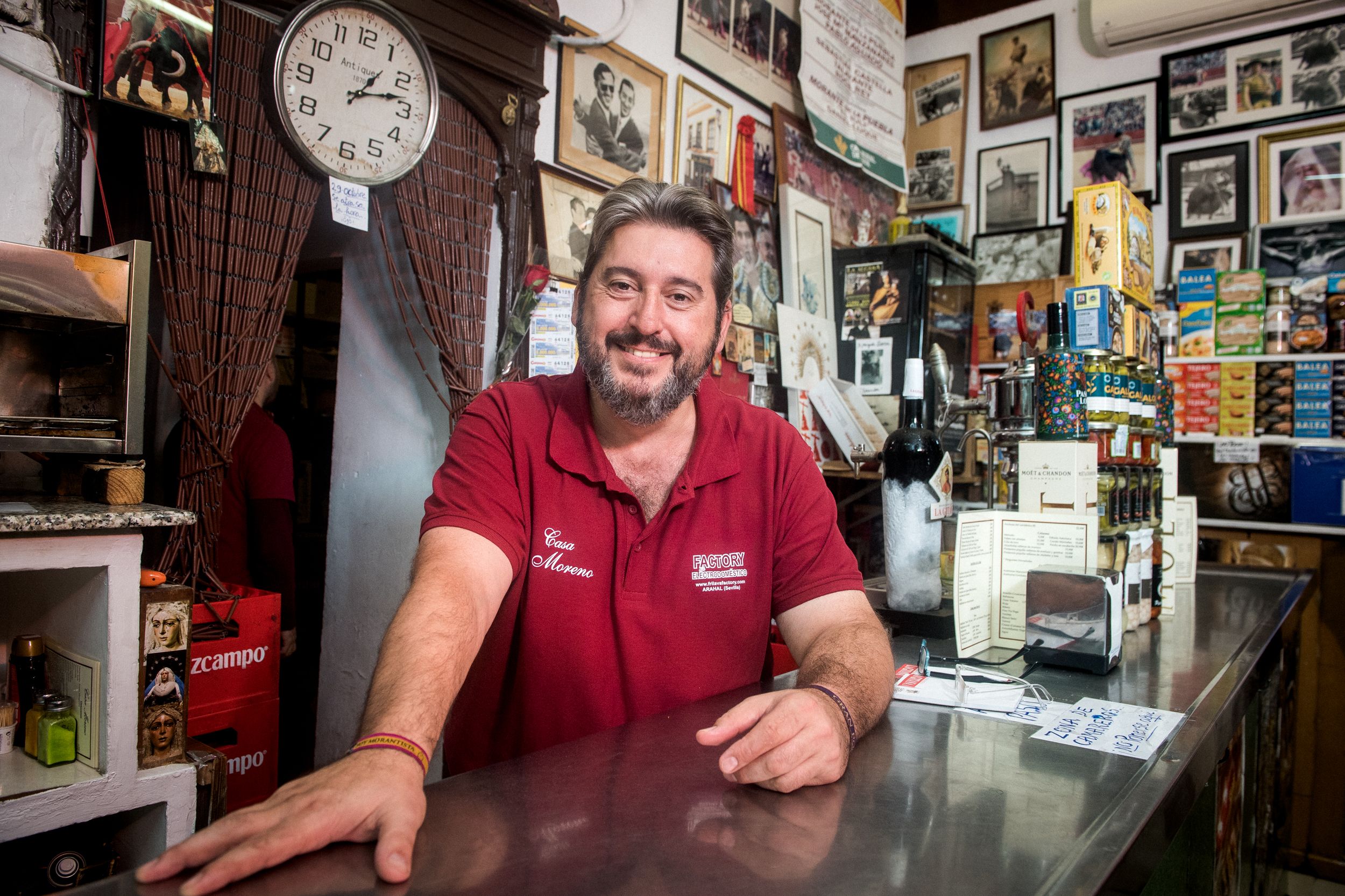 Camino de Triana, antes de cruzar el río, nos damos una vuelta por el barrio del Arenal. En su antesala un negocio peculiar, hablando de ultramarinos, Casa Moreno y su tapada trastienda, donde mora ese filósofo, periodista-poeta, que con un ramalazo de ingenio te estampa con cuidada grafía un pensamiento de sabiduría popular, se llama Emilio y te pone en papel encerado lo más grande, para pensar y para comer. Más cerca de la plaza de toros, la esquina de Casa Ventura, mirador de mediodía del latido del centro de la ciudad y privilegiada taberna de aires taurinos.
