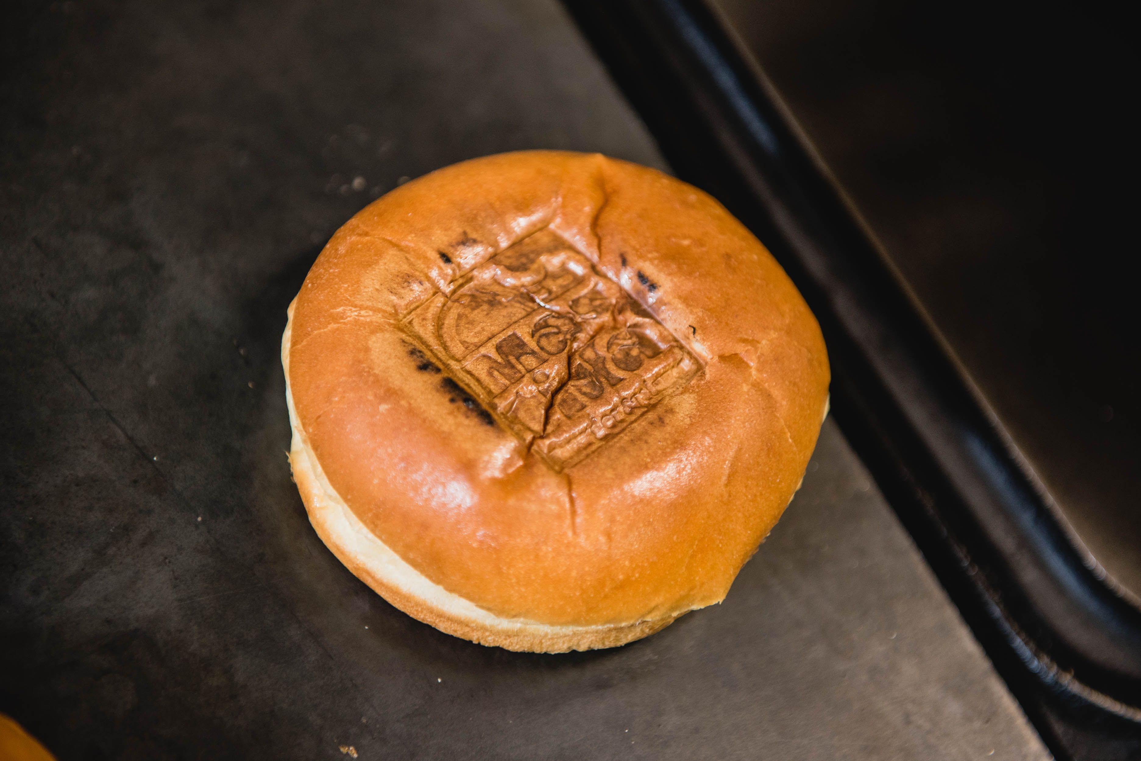 Una doble hamburguesa de carne picada de ternera, con un agradable punto trufado que lleva bacon en medio de sus dos piezas de carne de ternera picada y un huevo frito coronando el monumento que funde lentamente su yema sobre la carne al morderlo otorgándole una sutil cremosidad muy jugosa, todo ello en un delicado y sabroso pan brioche que se ha sellado previamente con mantequilla sobre el que luce estampado a fuego, como si de un anca de res se tratara, el logo del negocio. Acompañan el plato unas adictivas patatas fritas caseras cortadas a cuchillo en excelentes gajos.