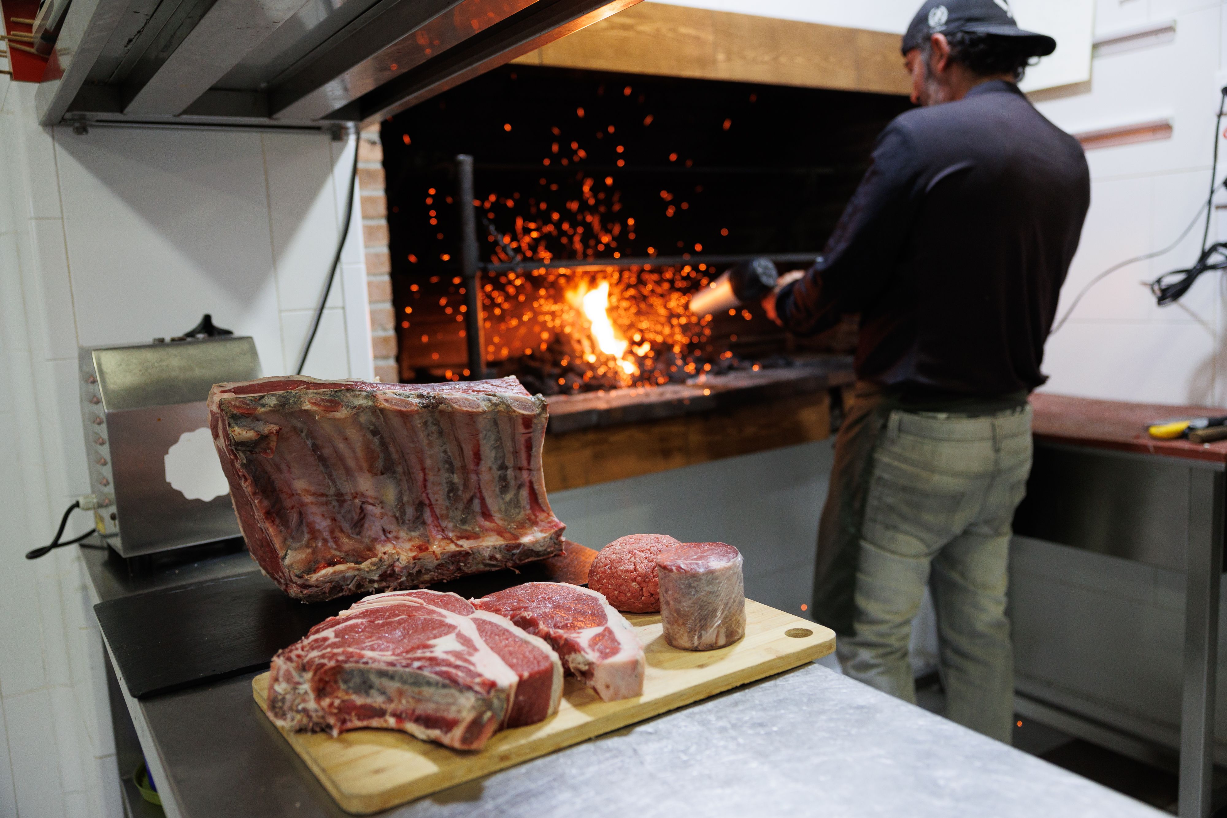 Mientras relata las bondades de la palurda muestra unas chuletas de riñonada que harían levitar a Pedro Picapiedra. Un redondo de solomillo de limpieza pulcra. Hasta una hamburguesa impactante, adaptada a los gustos más jóvenes.