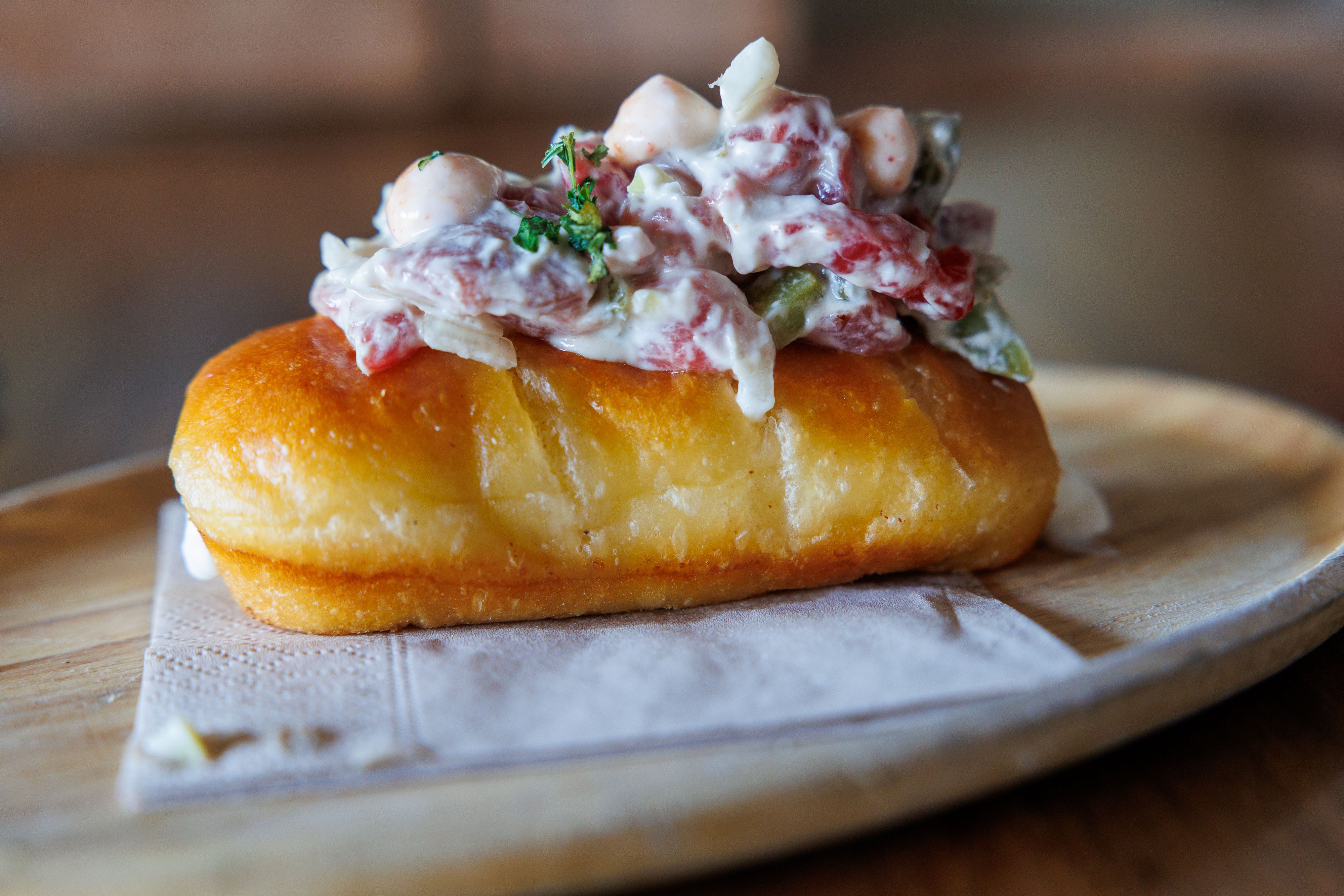 Es una carne tan versátil que puede servirse de muchas maneras. Ligeramente macerada, por ejemplo, en una tosta que Santos define como una de las estrellas de la carta y da a probar orgulloso (tiene motivos). También, vestida de steak tartar y con queso payoyo, dentro de un suso, un pan levemente dulce y frito. Una presentación divertidísima que anticipa el placer del sabor intenso.