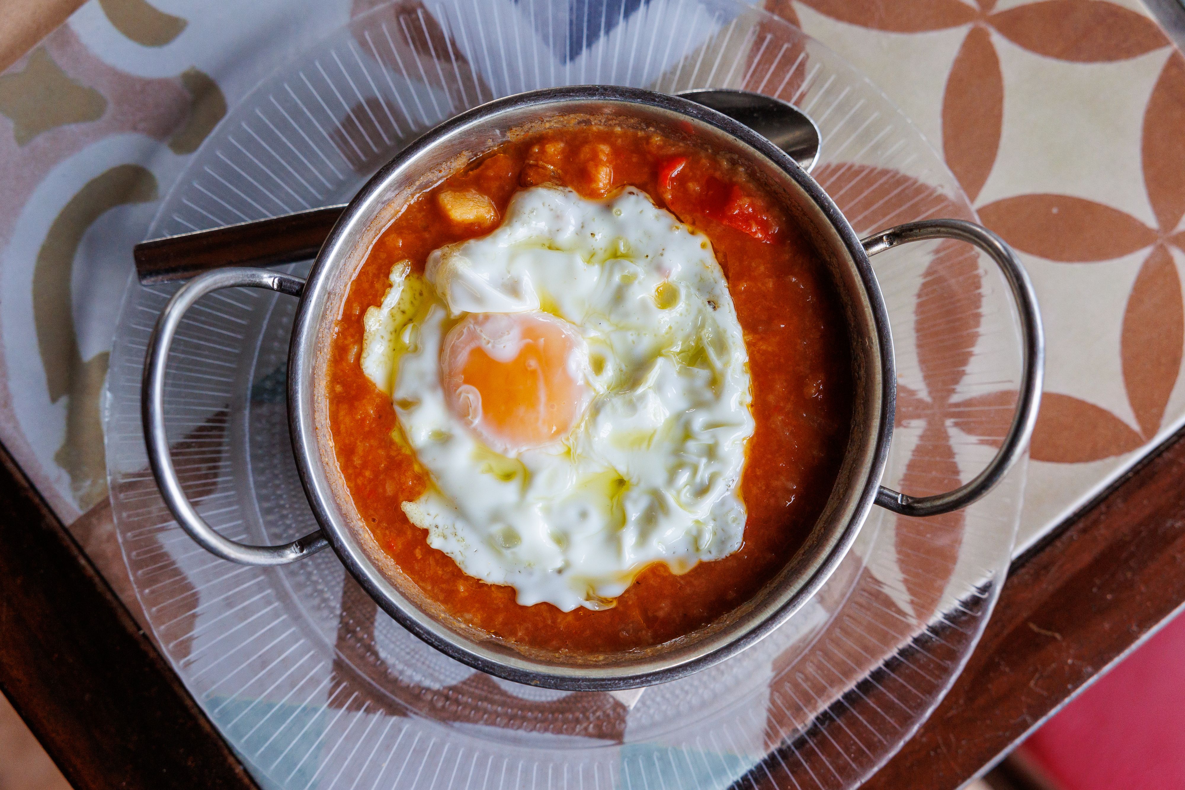 Para demostrarlo, los pacos muestran un guiso de albóndigas y otro con papas que ya están al fuego mucho antes de mediodía pero también una sopa de tomate con su gran huevo de gallina residente encima. Tagarninas y coles, como si son habichuelas, pasan a menudo por esta cocina. "Todo es del huerto propio", del campo y la sierra que están detrás del restaurante, que lo deciden todo.