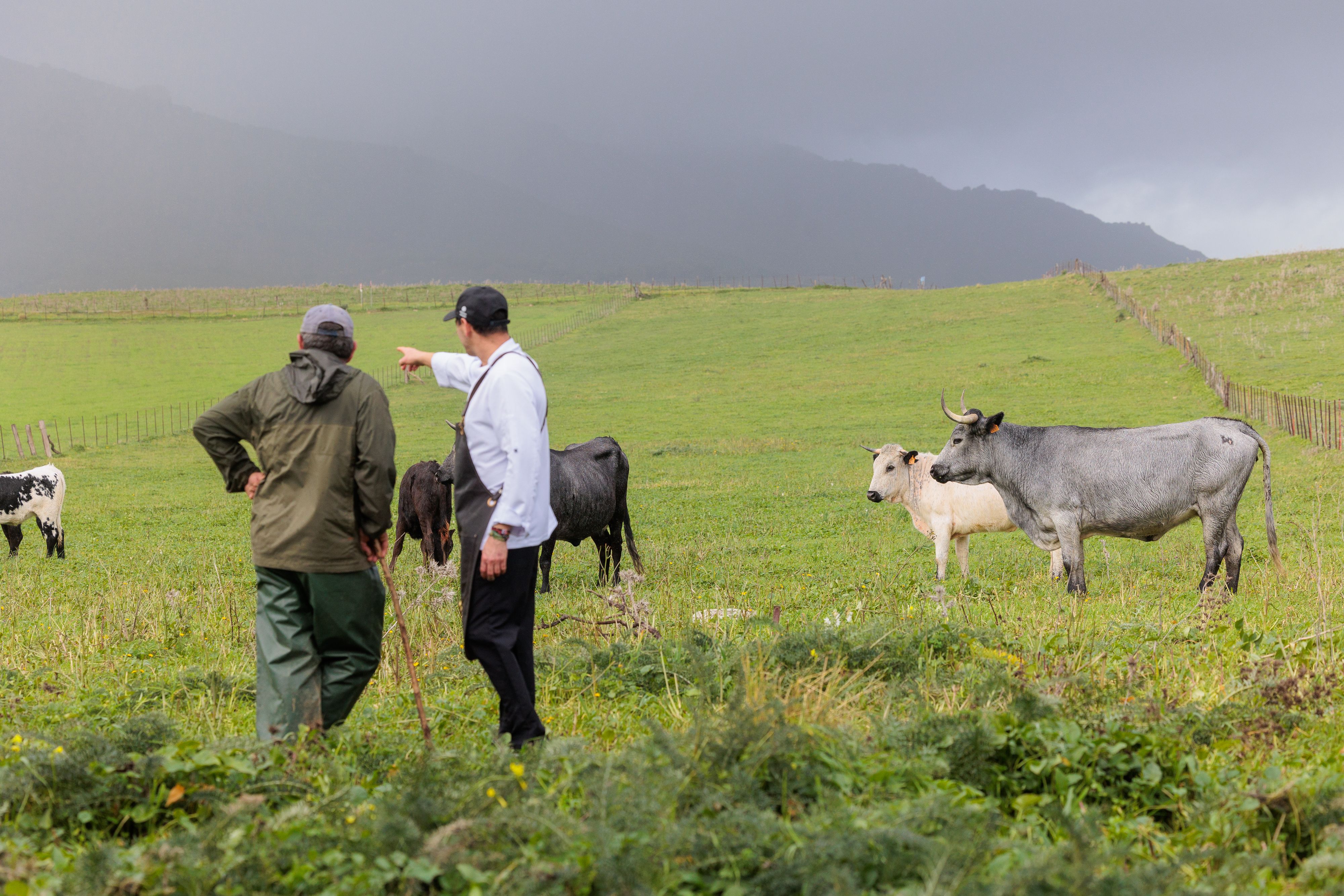 Al acercarse a los fogones, a una parrilla impresionante que asusta, Paco Santos conecta de forma automática las dos mitades del corazón ranchero: la herencia ganadera de sus padres (que aún mantiene con sus hermanos) y la gastronómica. El mayor vínculo es la vaca palurda.