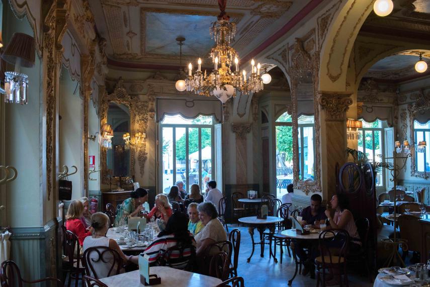 Espejos, lámparas de cristal y mesas de mármol -que no lápidas de tumbas, como se descubre en la hilarante escena de la magnífica película, basada en los relatos de Camilo José Cela, La Colmena (1982)- en un local con aire de confitería, es el ambiente propio de un café histórico, como aquellos que comenzaron a surgir en Viena tras derrotar al Imperio Turco y levantar el cerco de la ciudad en 1683. Unido a ciudades cultas y artísticas, fue también Venecia una de las pioneras, como su café Florián, nacido en 1720 y que todavía hoy reúne en sus veladores a viajeros cultos y artistas.
