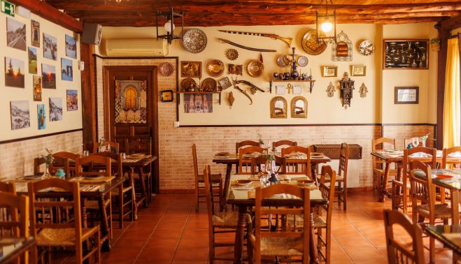 La terraza espléndida, nevada en muchas fotografías, tiene como complemento un salón sencillo, que abraza, con paredes temáticas. Una está dedicada a un certamen de pintura que organiza el local anualmente. Otra, a fotos de Benaocaz con el manto blanco que no cae desde 2017, atardeceres de postal y rincones del edén serrano pendiente de mayor descubrimiento. Una zona más queda dedicada a la artesanía y los objetos propios de Marruecos, a recuerdos de familia. Todo en madera y penumbra, con un mestizaje rústico y magrebí.