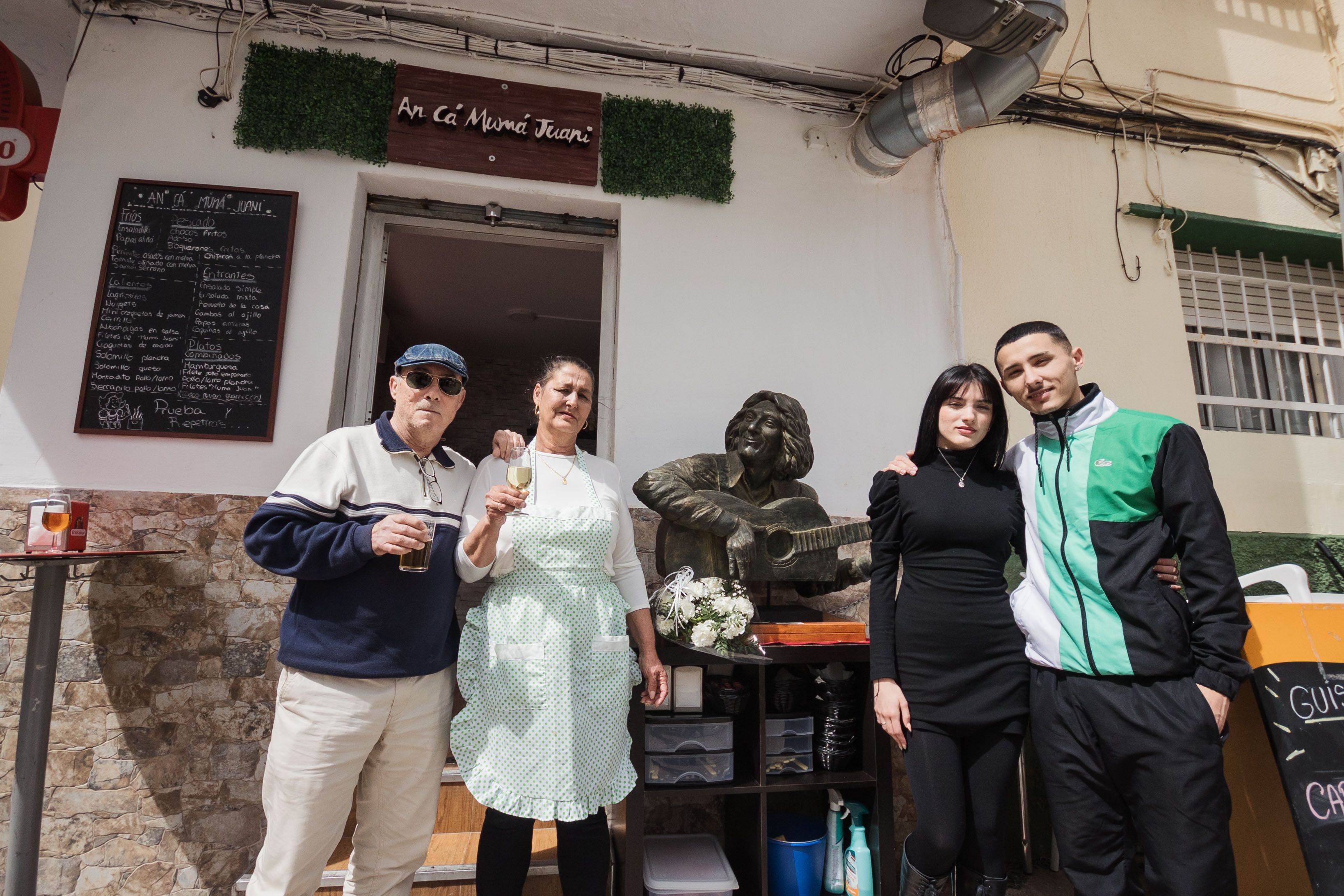 Se trata del bar 'En cá mumá Juani', "un museo del flamenco. Nosotros amamos este arte y así lo expresamos", comenta Juani Carrasco, la encargada del negocio y madre del autor de las esculturas que coronan el pequeño local, Raúl de la Calle.