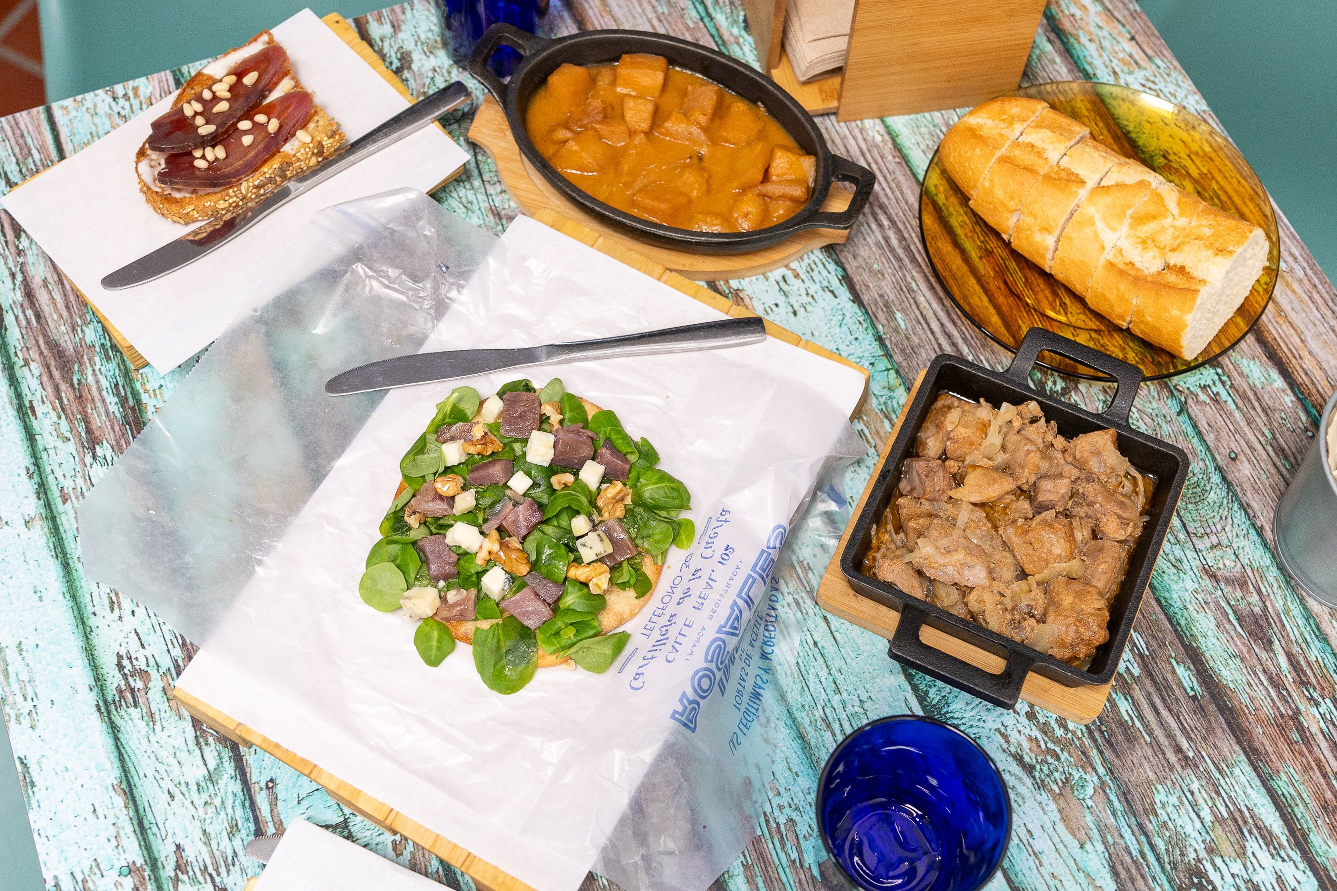 Hay apartado para patatas, a las bravas, arrieras (con langostinos al ajillo y ali-oli) o con huevos rotos y jamón. El mar de Barbate tiene sección propia con una de las mojamas más cuidadas y mejor cortadas de la zona, de Herpac, salmorejo, tostas -alguna reseñable con torta Inés Rosales- y matrimonio.