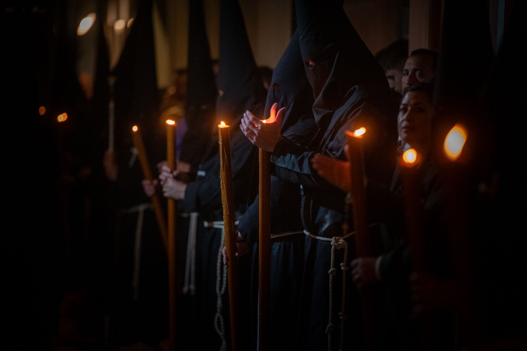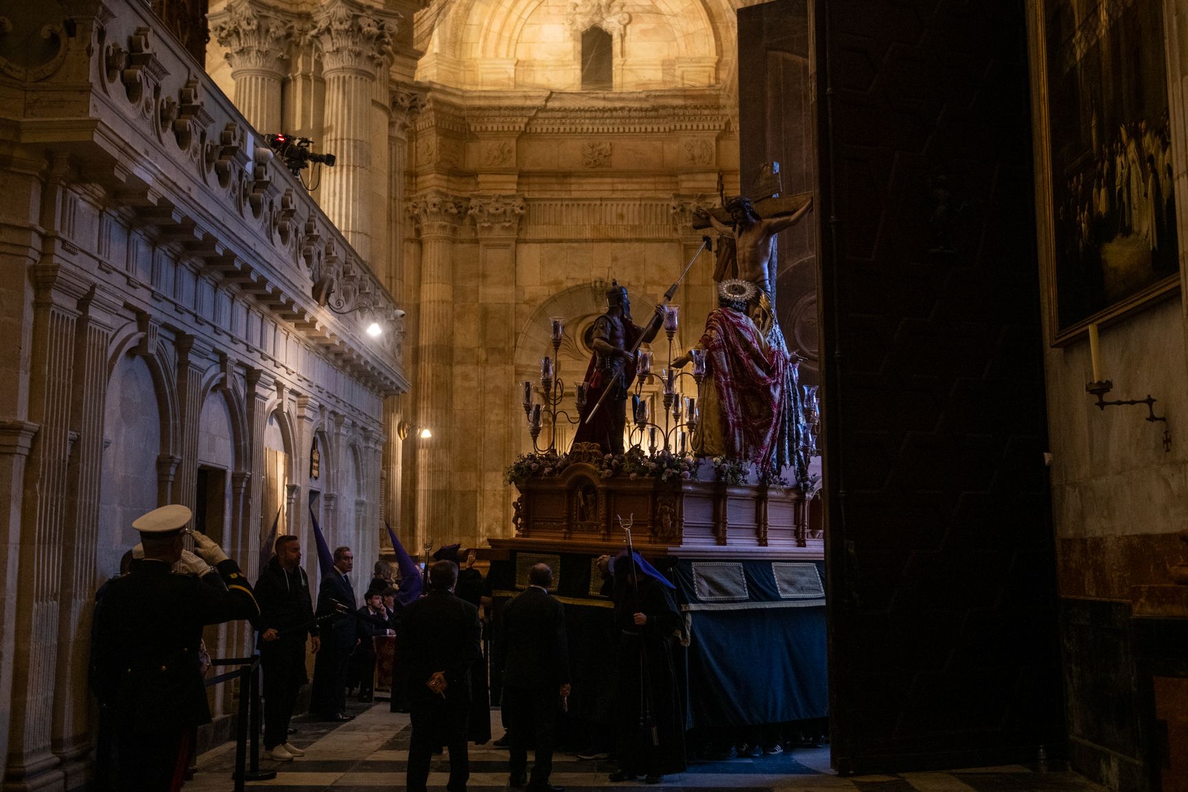 Momento de la estación de penitencia en Catedral con la luz apagada