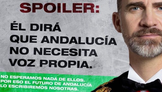 La campaña la componen una serie de imágenes de personas a las que, según Adelante Andalucía, no les "interesa" que la comunidad tenga voz propia. "A quien seguro no le interesa es al rey y a su familia. La corrupción sobrevuela sus yates de lujo y cada vez menos gente cree que su figura sirva para algo", expresa Teresa Rodríguez, portavoz del grupo parlamentario. "Expertos en vaciar las arcas públicas, defensores de la España más casposa y antiandaluza. Para que nuestra tierra no se parezca ni una mijita a lo que ellos quieren que sea, organízate", reseña, junto a una imagen de Santiago Abascal.