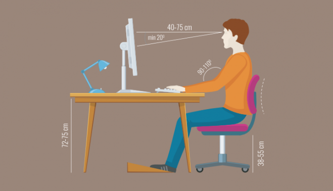 La guía considera fundamental cuidar la ergonomía del puesto de trabajo, ya que una distribución de los espacios incorrecta puede causar lesiones de tipo músculo esquelético. En concreto, si no se adopta una postura saludable pueden producirse molestias en la nuca, espalda y hombros, y con menor frecuencia en brazos, manos y piernas.