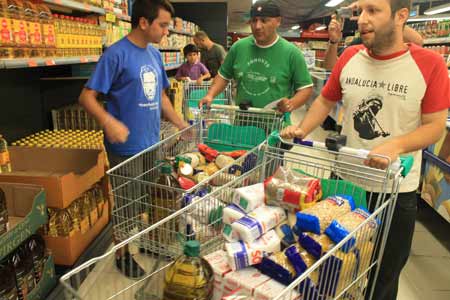 En la concentración, tanto Cañamero como Reina aseguraron que "la denuncia" que hicieron en estos establecimientos "era porque había 400.000 familias andaluzas sin trabajo, sin ningún tipo de protección, que no podían pagar los suministros básicos y en situación de pobreza, por lo que no era ni robo ni violencia", a lo que añadió Cañamero que "coger cuatro o cinco carros de comida para repartirlos simbólicamente en una barriada de familias necesitadas era para que se avergonzaran políticos y gobernantes, por lo que ni cabe violencia ni robo".