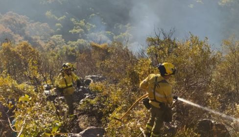 Actualmente, el perímetro se encuentra rodeado por una línea de control, aunque en su interior aún pueden quedar algunos puntos calientes. Así, los efectivos están realizando labores de refresco del incendio con gran potencia debido a la abundante vegetación.