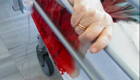 Su madre, al padecer de una insuficiencia cardiorrespiratoria, la metieron en observación y le hicieron varias pruebas. "Y al final este martes decidieron hospitalizarla porque tenía un ritmo cardíaco muy lento". Por falta de camas, a su madre la subieron a planta en la madrugada de este miércoles, el mismo día en que Pilar llega, a eso de las ocho de la mañana, y se encuentra con el brazo de su madre ensangrentado y un charco con sangre coagulada en el suelo.