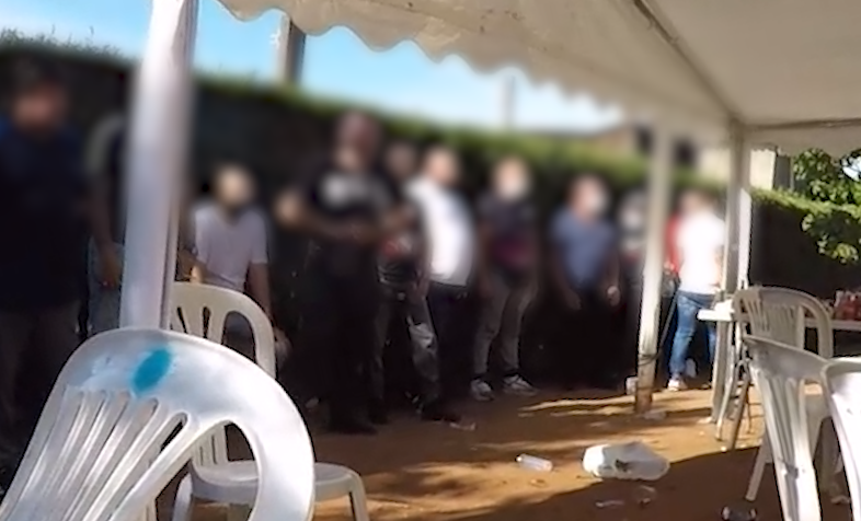 Una vez que la Guardia Civil llegó al lugar, sorprendió a una muchedumbre superior a 120 personas, todas ellas reunidas en torno a un reñidero realizado al efecto, bajo una carpa de toldo, quienes al verse sorprendidos comenzaron a huir. En el momento de ser sorprendidos, los asistentes a la reunión se encontraban apiñados en torno al "ring" o lugar de pelea de los animales, sin guardar la más básica distancia de seguridad ni utilizar medios higiénicos (mascarillas o guantes).